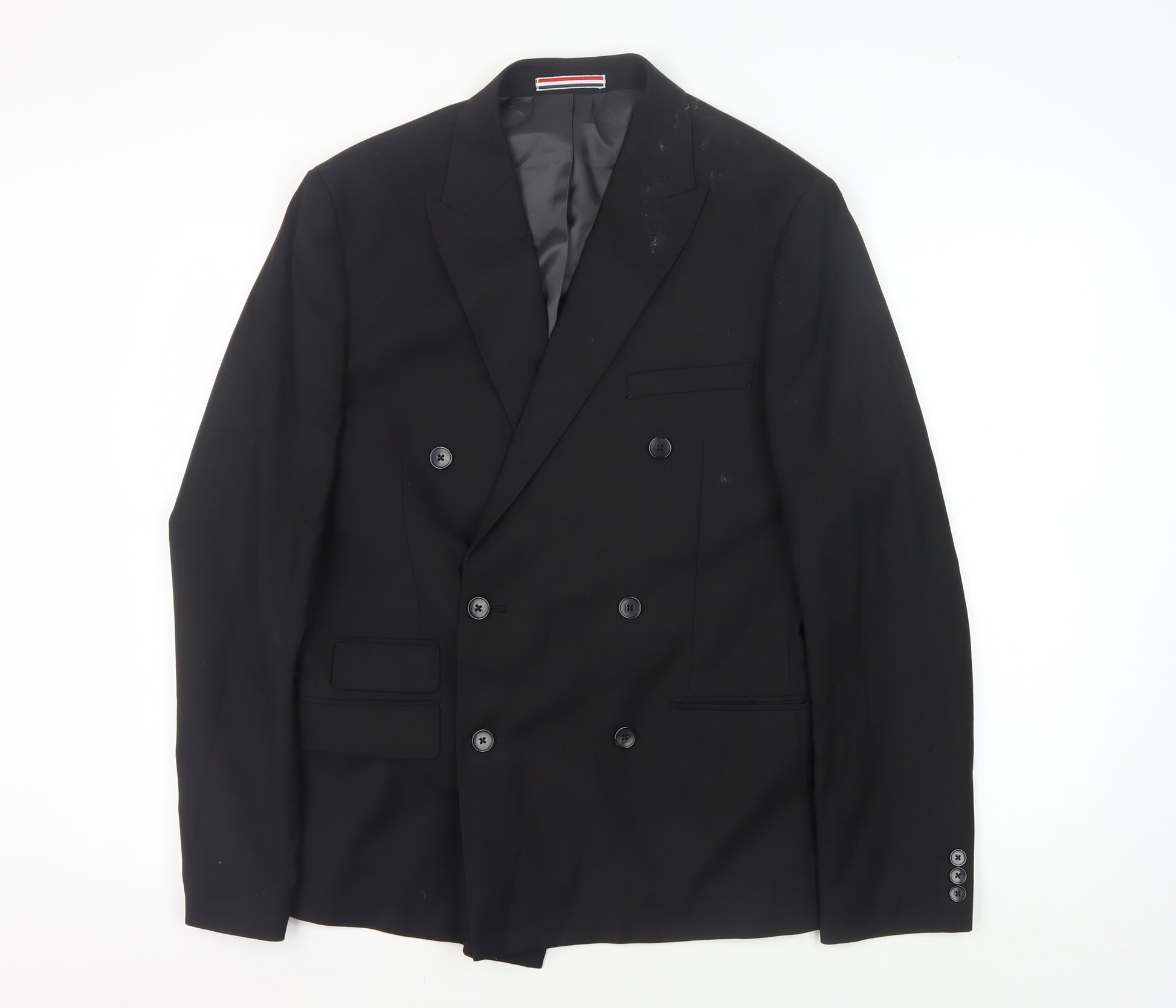 Elevate your formal attire with this classy Moss London men's suit jacket. Available in a sleek black colour, it's designed to fit perfectly with a chest size of 40 inches. This double-breasted suit jacket features a six-button front, adding a touch of sophistication to your look. Made with high-quality materials comprising 68% polyester, 28% viscose, and 2% lycra, it ensures both comfort and durability for various occasions such as business meetings and formal events. The lining is crafted from 100% polyester, offering a smooth finish. Additionally, the jacket is tailored in a regular fit and features a double-vented style for ease of movement. Suitable for men, it falls under the regular size type, ensuring a conventional and flattering look. The garment requires dry cleaning to maintain its pristine appearance. Although it features some light marks, the condition is rated very good, making it an excellent addition to your wardrobe at a competitive price. This piece is perfect for those looking to enhance their formalwear collection with a touch of elegance and sophistication.