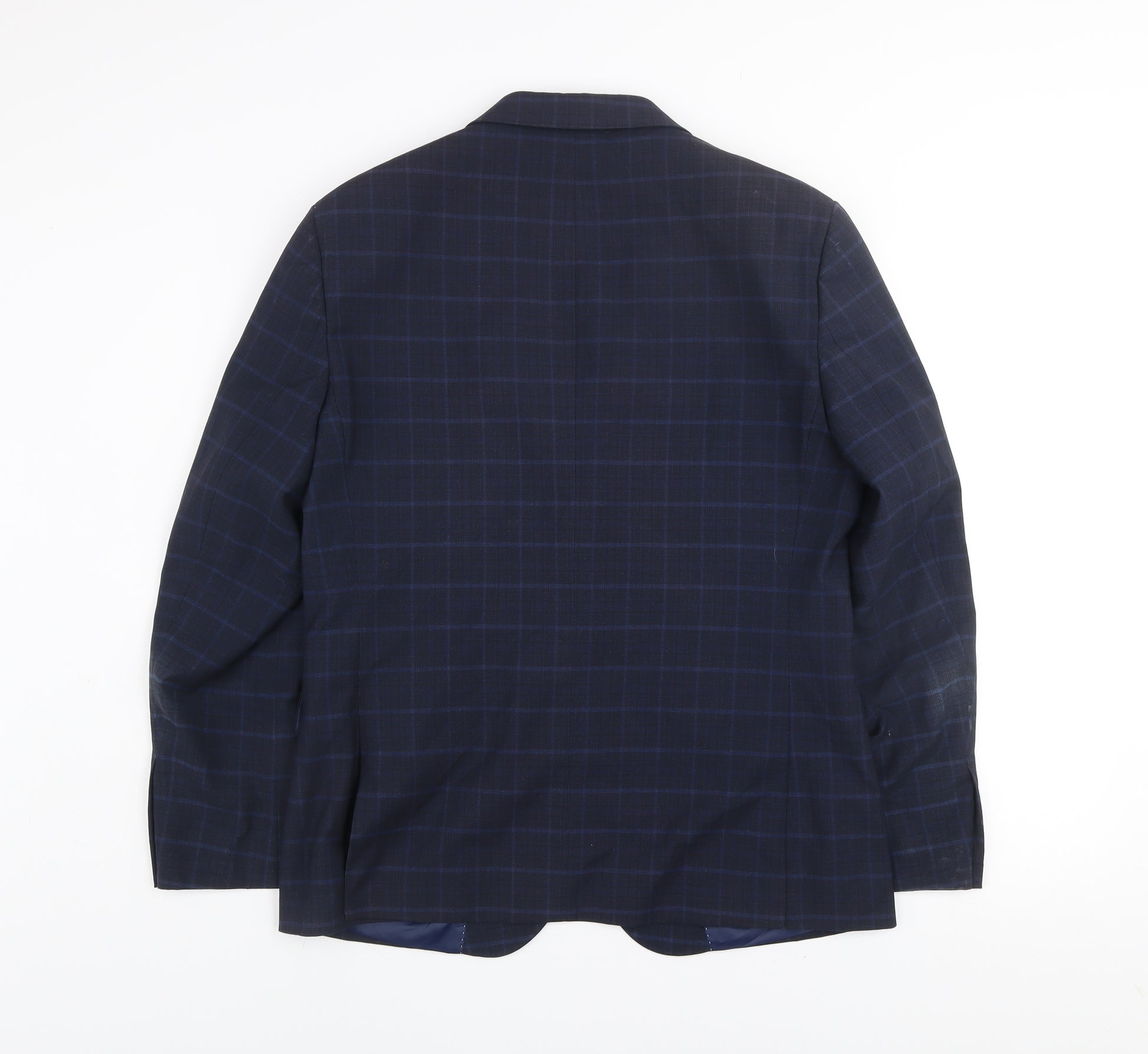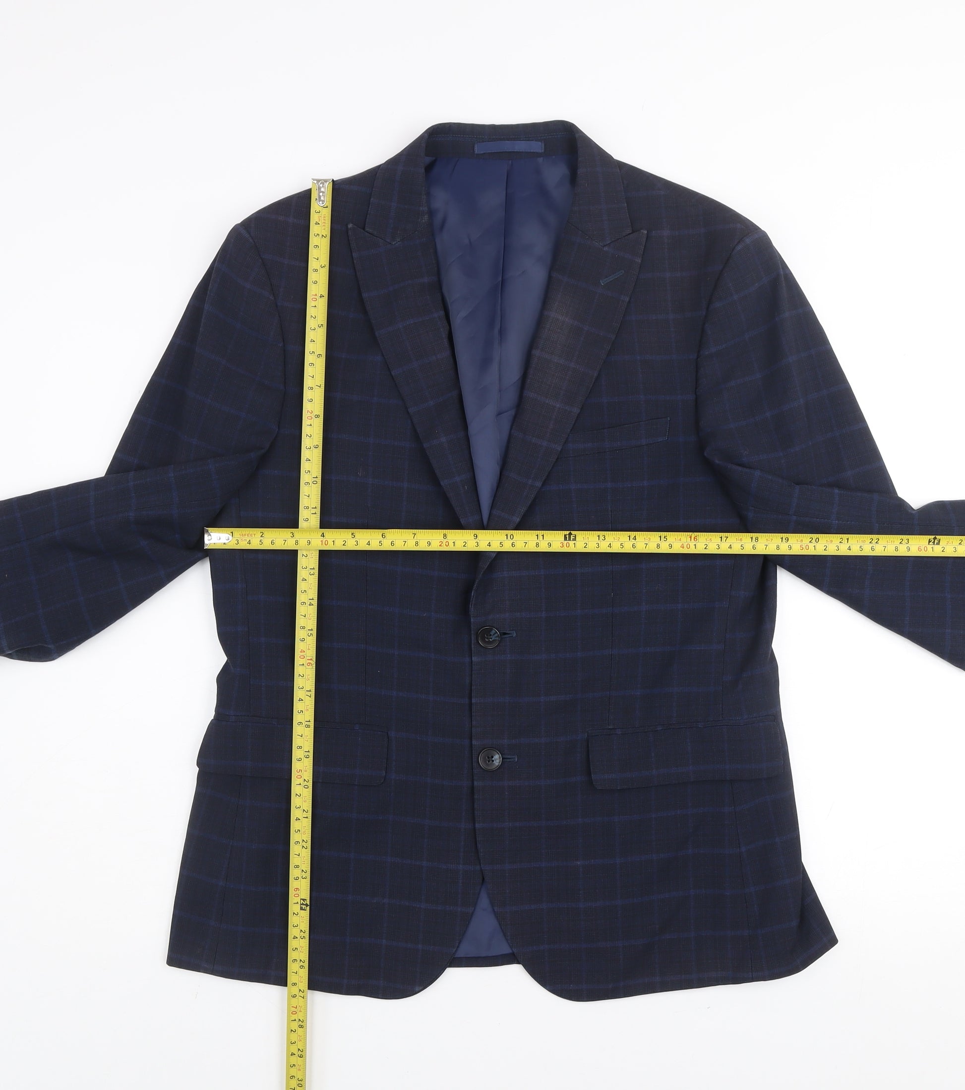 Men's Blue Checked Slim Fit Blazer Jacket 40 Short