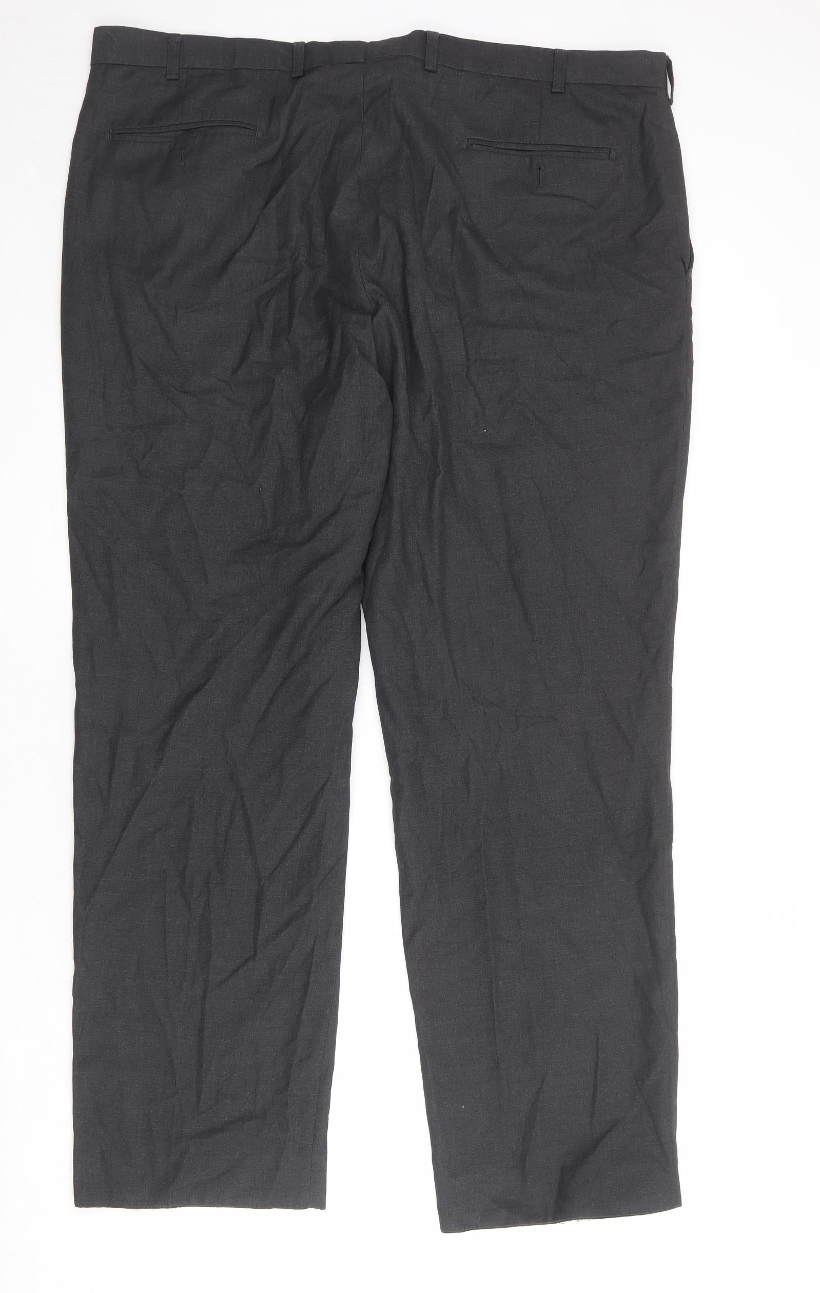Mens Grey Polyester Dress Pants Trousers Size 42 in Regular Zip