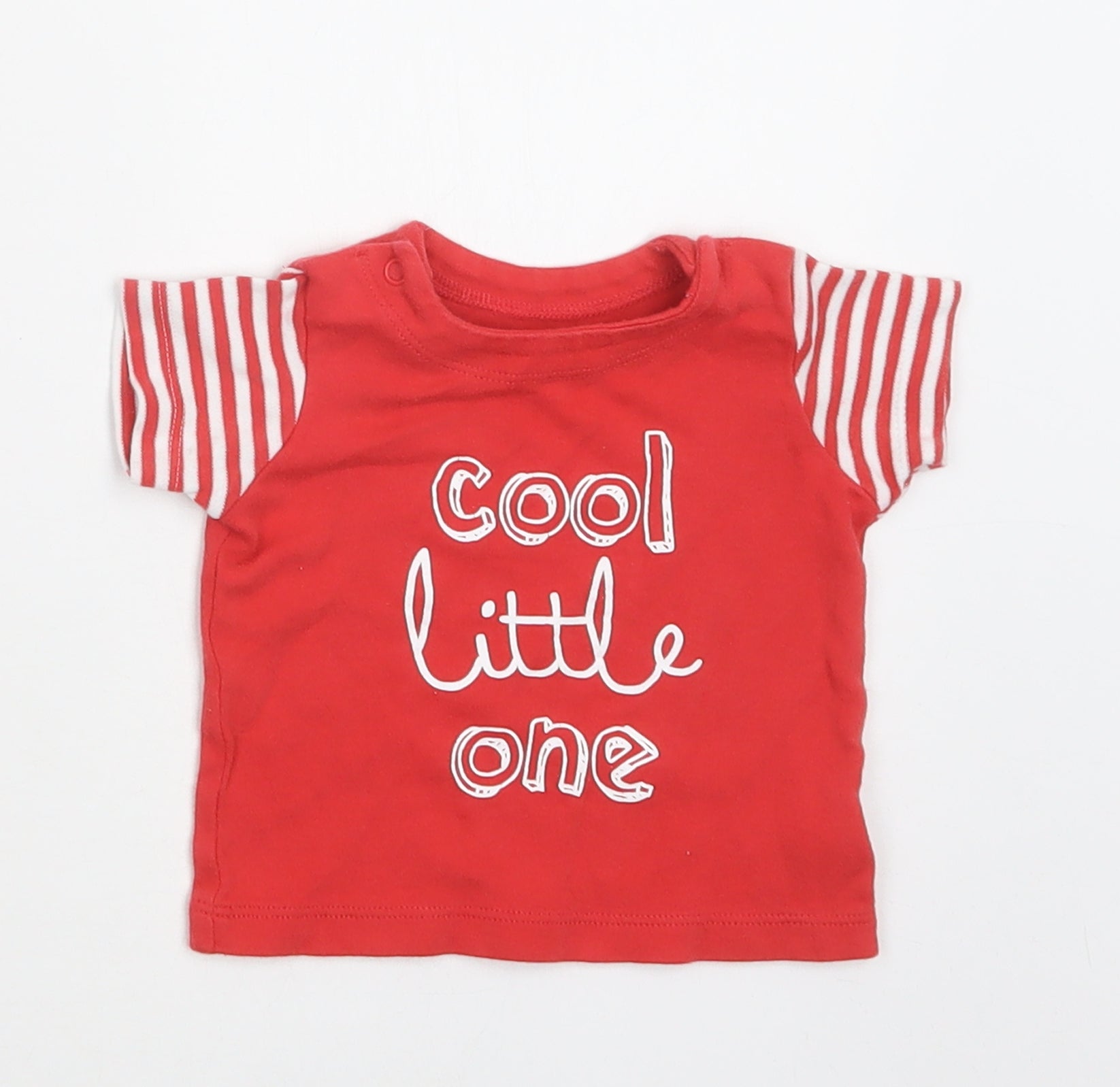 Baby Red Striped Cotton Basic T-Shirt Size 0-3 Months Crew Neck Snap - Cool
