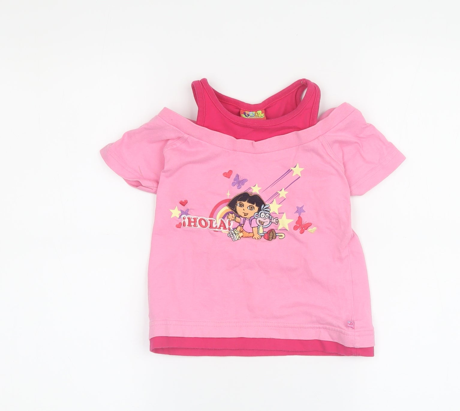 Girls Pink Dora Explorer T-Shirt 3-4 Years Cotton Graphic