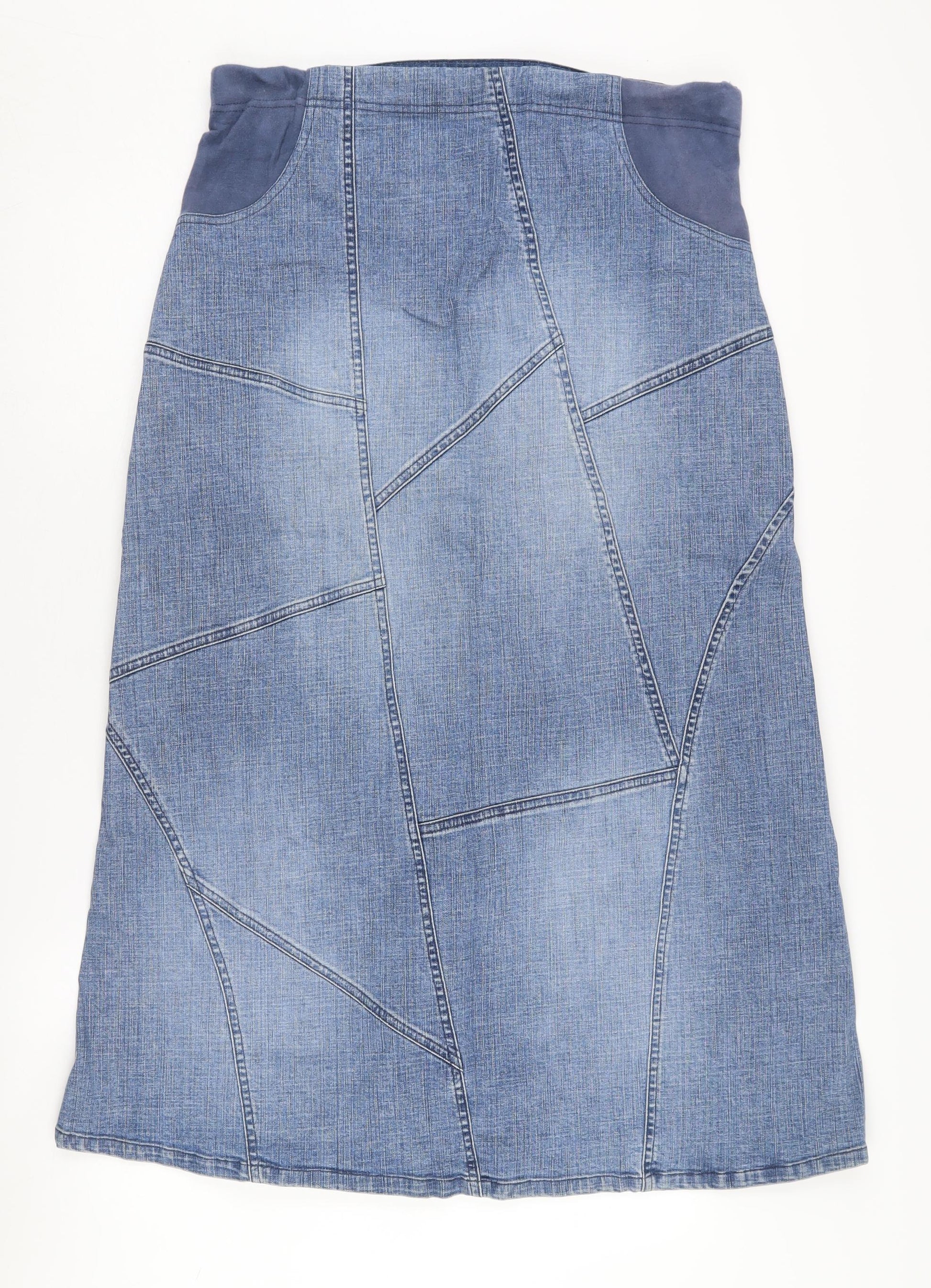 This casual blue denim skirt by Mothercare is the perfect addition to your wardrobe. Designed in a timeless A-Line style, it's suitable for women who appreciate both comfort and style. The skirt falls to a knee length, making it versatile for all seasons, whether you're dressing up for a casual outing or keeping it laid-back for everyday wear. The addition of pockets adds a practical touch, while the mid-rise ensures a flattering fit. Made from a durable cotton and elastane blend, it offers ease of movement while maintaining its shape. Perfect for inserting effortlessly into any wardrobe, its machine-washable feature means less fuss in maintaining its crisp blue hue. The zip closure adds convenience, rounding off this piece as a stylish and functional garment, ideal for everything from casual errands to leisurely weekends.