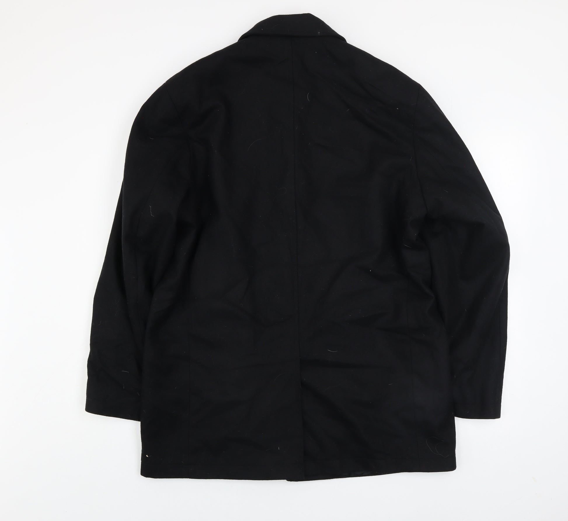 Mens Black Wool Blend Mid-Length Overcoat Size M