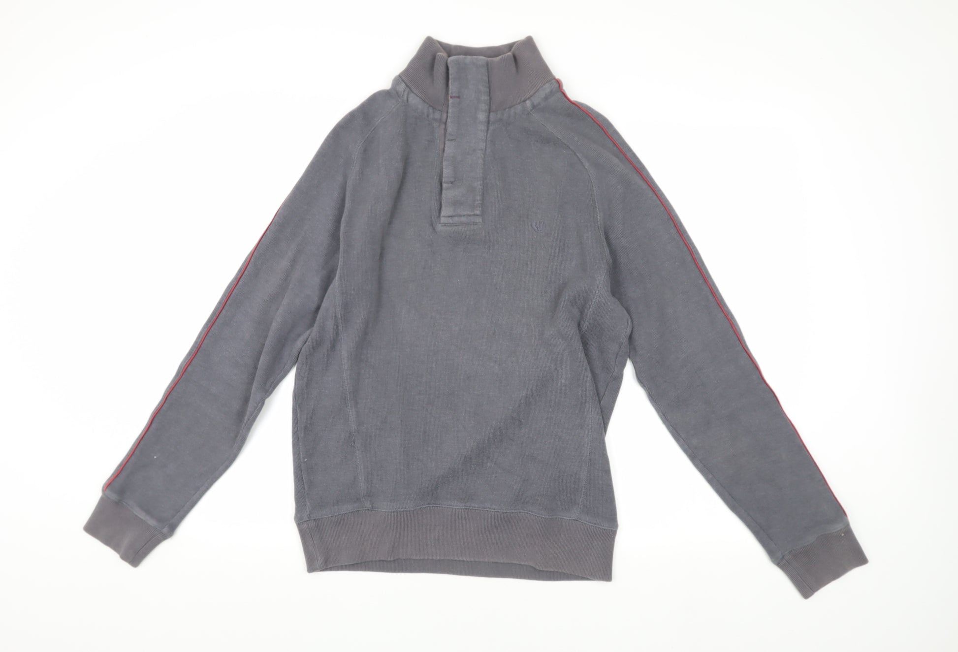 Experience comfort and style with the Mountain Beach Men's Grey Sweatshirt. Ideal for autumn and winter seasons, this classic grey knit sweatshirt is crafted from 100% cotton, ensuring breathability and warmth. Featuring a high neck design with long sleeves, it's perfect for casual outings or layering during colder months. The subtle logo accent adds a touch of distinctiveness, making it a versatile piece for any wardrobe. This sweatshirt comes in a regular size S, fitting comfortably without being too tight. Though slightly worn, it remains in very good condition, ready to be a staple in your collection. Machine washable and easy to care for, this sweatshirt seamlessly blends practicality with style. Add this essential piece to your wardrobe for a classic yet contemporary look.