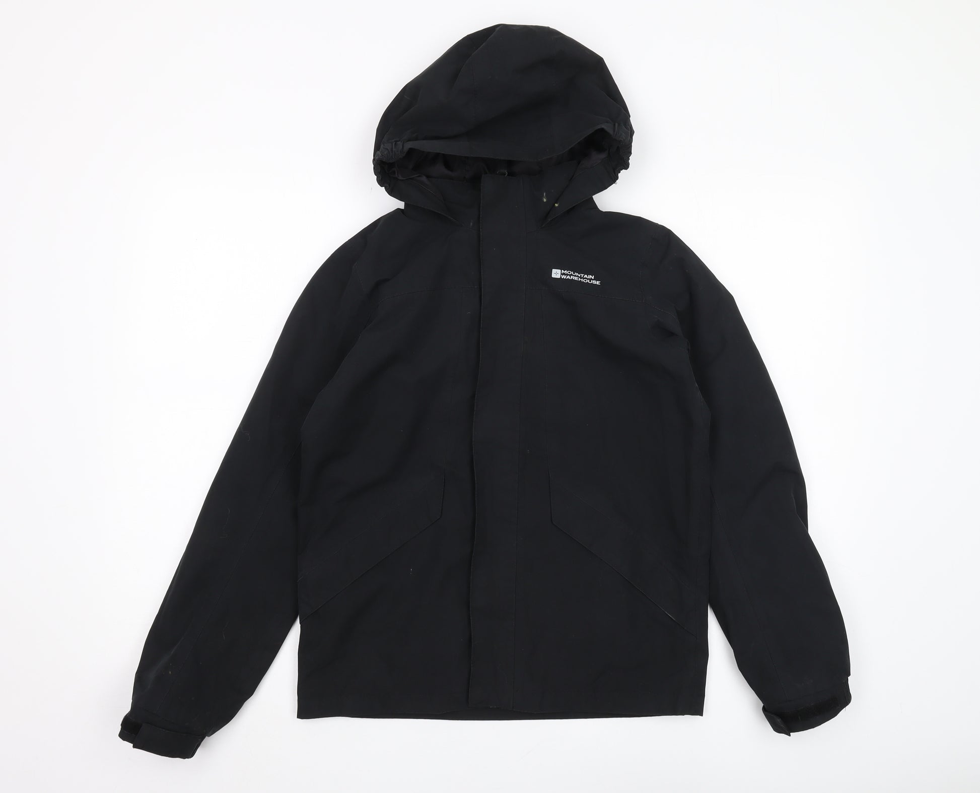 Equip your young adventurer with the Mountain Warehouse Boys Black Waterproof Parka Coat, tailored for those spirited outings through unexpected weather. Ideally suited for ages 11-12 years, this mid-length jacket offers reliable protection with its waterproof and water-repellent properties, ensuring your child remains dry even when the rain pours. Crafted from durable polyester, this hooded parka seamlessly blends practicality with style for active boys. The classic black design is both versatile and sophisticated, suitable for casual wear and outdoor hikes alike. The full zip closure ensures ease of wear, while the long sleeves provide ample coverage from the wind and chill. Perfect for autumn and winter seasons, this practical jacket will keep your child comfortable as they explore the world around them. Though preloved, it still holds its charm, showing only minor signs of wear and tear. Ensure your child's outdoor adventures remain uninterrupted with this dependable and stylish choice. At a reasonable price point, it's a wise addition to their wardrobe, blending warmth with adventure-ready functionality.