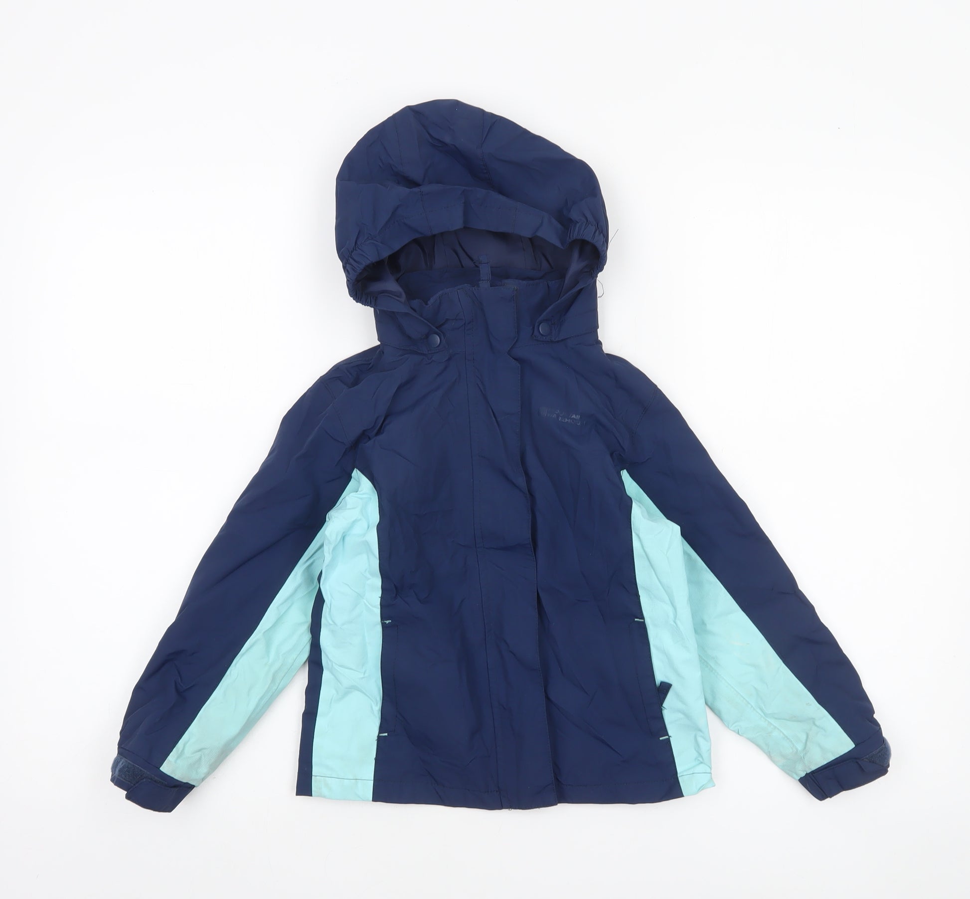 Keep your little adventurer comfortable and dry whatever the weather with this Mountain Warehouse boys’ hooded rain coat. Designed in a bold two-tone blue colourblock style, this jacket combines practical performance with everyday casual appeal. Constructed from 100% woven polyester, it offers a lightweight yet reliable waterproof shell that’s ideal for outdoor play, school days, or family hikes. The full zip fastening with storm flap and button closure helps block out wind and rain, while the snug elasticated cuffs keep warmth inside. A soft polyester lining adds comfort, ensuring it’s great for layering through the autumn and winter months. The attached hood provides extra protection from showers, making it perfect for unpredictable weather. This mid-length jacket features practical zipped pockets for secure storage of small essentials and a flexible fit for unrestricted movement. It’s machine washable for easy care, ensuring it’s effortlessly ready for next use. In very good used condition, showing only minor wear and some light marks to the sleeve edges, this coat still has plenty of adventures ahead. Ideal for boys aged 5–6 years, it’s a reliable, stylish, and functional piece that embodies Mountain Warehouse’s dedication to quality outdoor wear. Whether worn for forest walks, playground fun, or school outings, this jacket offers both practicality and comfort—an excellent staple for the colder months ahead.