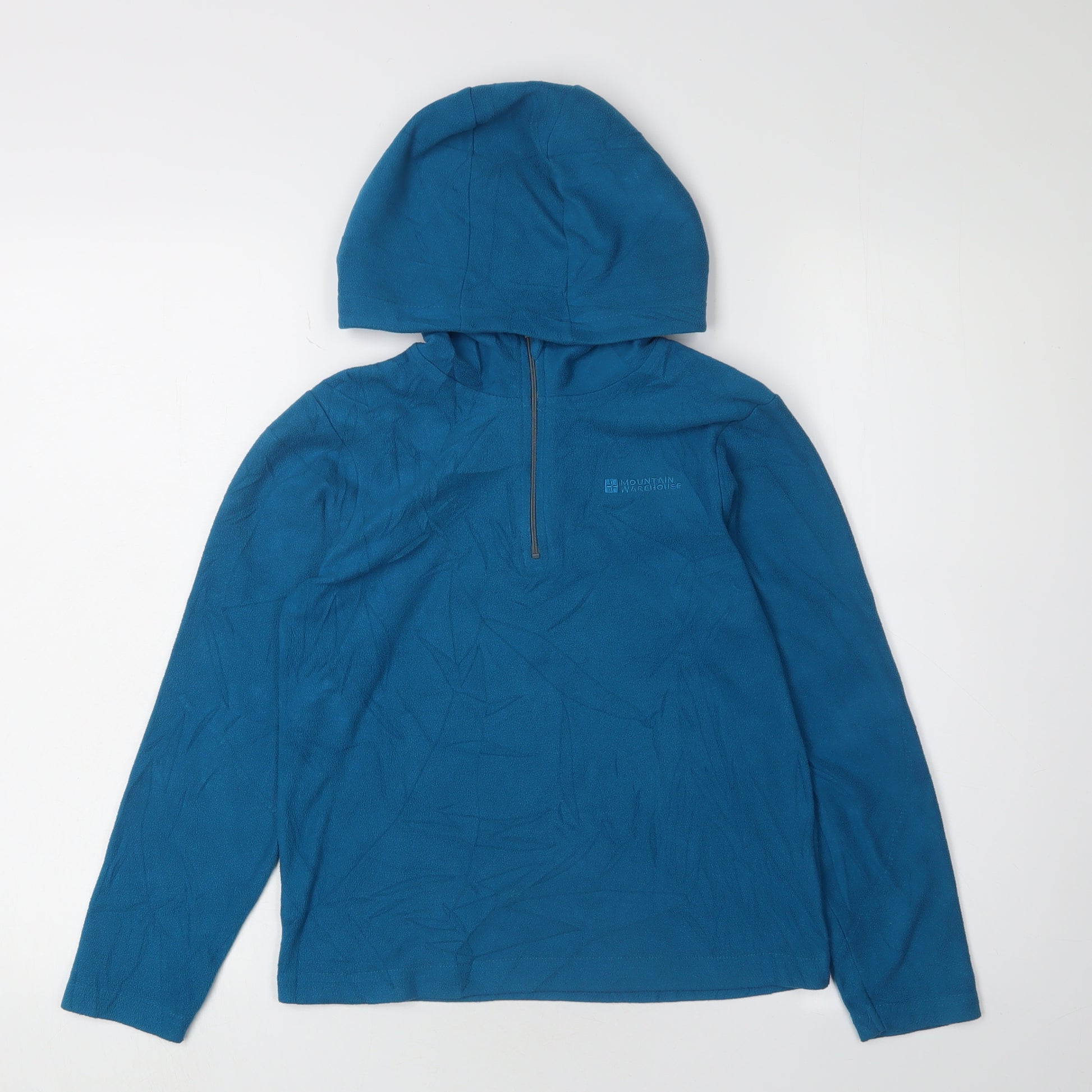 Elevate your child's wardrobe with this versatile and stylish Mountain Warehouse Boys Pullover Hoodie in a striking blue colour. Perfectly designed for boys aged 9-10 years, this hoodie combines comfort and practicality with a touch of modern style. Crafted from 100% polyester fleece, it promises warmth and durability while being lightweight, making it suitable for all seasons. The regular fit ensures comfort and ease of movement, whether they are at play, school, or lounging at home. Featuring a crew neckline and long sleeves, this hoodie offers a classic look that never goes out of style. The zip closure adds convenience, allowing easy wear and removal while keeping the cold at bay. The absence of any pattern and vibrant blue hue makes it easy to pair with a variety of outfits. Ideal for casual wear, this hoodie is machine washable, ensuring hassle-free care. Although it comes in excellent condition with no visible tags, it guarantees the quality and reliability you'd expect from a Mountain Warehouse product. Comfortable and versatile, it's a perfect choice for parents seeking practicality without compromising on style.