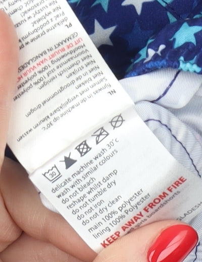 Get ready for a fun day at the beach with these vibrant Mountain Warehouse boys' shorts. Designed for comfort and style, these shorts feature a striking blue star pattern that your little one will love. Crafted from 100% polyester, they offer UV protection, making them perfect for sunny summer days. The shorts are designed with a regular fit and a convenient drawstring closure, ensuring a snug fit during play or swimming. Made for activewear occasions, these shorts are both functional and fashionable. Machine washable for easy care, they are an excellent addition to any boy's summer wardrobe. With their new condition and original sales tags intact, these shorts are ready to make their debut on your next beach outing. Don't miss out on this stylish piece that's both practical and eye-catching.