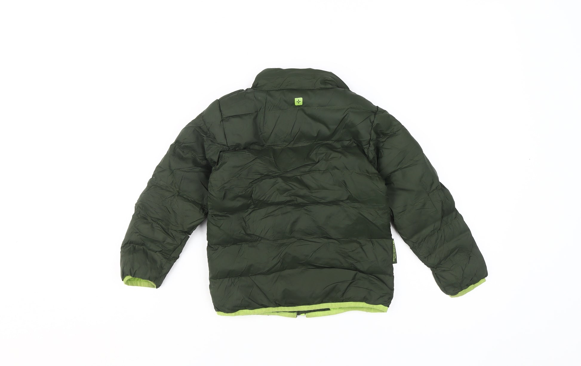Prepare your little one for outdoor adventures with this Mountain Warehouse Boys Puffer Jacket, designed in an attractive green shade. Expertly crafted with a shell made from 100% nylon, this jacket ensures durability and resistance to the elements. Lined with soft polyester, it adds an extra layer of comfort, making it perfect for everyday wear. The lightweight padded design provides warmth without bulk, making it suitable for all seasons. Featuring a full zip closure, it's easy to put on and take off, ideal for busy parents and active children. The jacket is also machine washable for easy care. Despite being pre-owned, it’s in good condition without any damage, ready for a new adventure. Perfect for casual outings, this jacket makes a stylish and functional addition to any young boy's wardrobe.