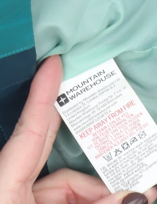 Keep your young explorer dry and comfortable with this Mountain Warehouse boys’ waterproof rain coat, crafted from durable 100% polyester in a stylish two-tone green colourblock design. Part of the Repreve Our Ocean collaboration with Steve Backshall, this eco-conscious jacket is made using recycled materials for sustainable adventuring. Brimming with practical features, it includes a secure full zip closure with storm flap, hook-and-loop adjustable cuffs and a protective hood, making it ideal for unpredictable weather conditions throughout spring, autumn and winter. The lightweight yet lined construction ensures breathability while providing additional warmth on cooler days. Two zipped pockets at the front offer storage for essentials, while the embroidered chest logo adds a subtle branded accent. Perfect for school runs, outdoor walks, hiking or simply everyday wear, this regular fit mid-length jacket is versatile and reliable. With its weatherproof protection, it performs well in active pursuits while remaining easy to care for—simply machine washable for convenience. The colourblock styling gives a modern edge that young adventurers will love. In excellent pre-owned condition, this jacket shows minimal signs of wear and no defects, ensuring plenty of life left for its next owner. Whether layered over a cosy jumper in winter or worn as a standalone shell during rainy spring showers, this rain coat is a practical and stylish choice for any season. Designed for kids who love exploring the outdoors, it delivers quality, comfort and purpose in equal measure while supporting ocean-friendly initiatives. Durable, functional and ready for adventure, this Mountain Warehouse hooded rain jacket is an ideal addition to any boy’s outerwear collection.