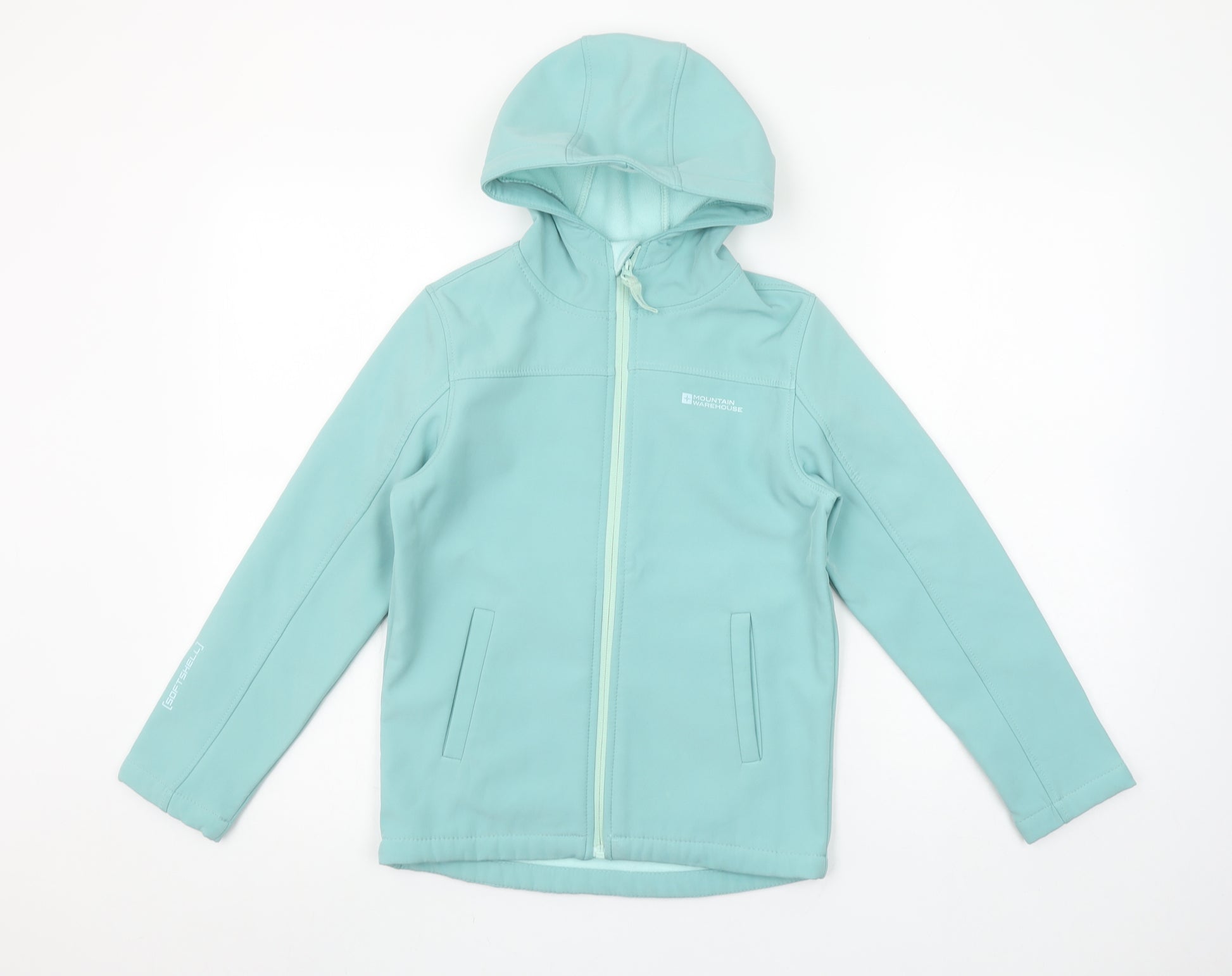 Keep your young explorer warm and comfortable whatever the day brings with this Mountain Warehouse Girls Blue Soft Shell Hooded Jacket in size 9-10 Years. Designed for adventure, this mid-length jacket combines practicality with a stylish modern look, perfect for school runs, weekends outdoors, or light rainy days. Expertly crafted from a blend of 93% polyester and 7% elastane, it offers a flexible, durable outer shell that provides great softness and reliable water resistance, making it ideal for transitional weather in spring and autumn. The inside is lined with lightweight polyester for added comfort and moisture management, helping to keep the wearer dry and snug. The jacket features a smooth full zip fastening for easy wear, two secure front pockets for essentials, and a cosy hood that provides extra protection from wind and drizzle. Finished in a refreshing pastel blue shade, it delivers timeless outdoor charm while keeping function at the forefront. The softshell material allows natural movement while the water-resistant coating gives peace of mind during unexpected showers. Suitable for outdoor activities such as hiking, walking, and active play, this piece also works perfectly as a versatile everyday outer layer. Machine washable for easy care, this jacket is made for active kids who love the outdoors. Although there are a few minor marks on the reverse, the overall condition remains very good, ensuring plenty of wear left. Whether worn to school or during weekend adventures, this Mountain Warehouse soft shell jacket offers quality, performance, and style in one practical package — a great value buy for parents seeking a dependable, comfortable, and fashionable layer for their child.