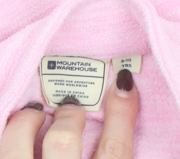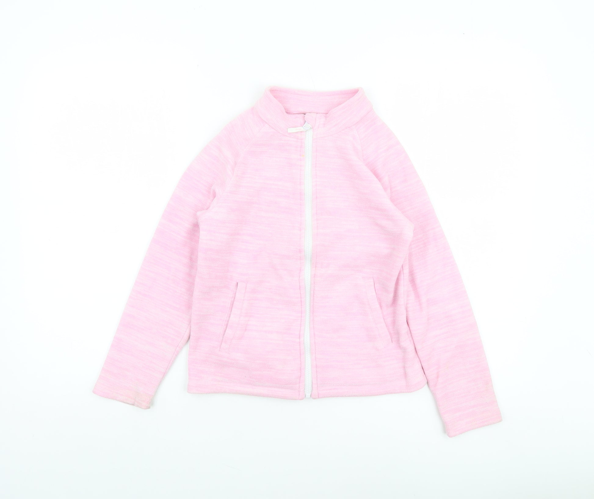 This Mountain Warehouse girls’ pink fleece jacket is designed for comfort and casual outdoor wear. Crafted from soft 100% polyester, this lightweight layer provides reliable warmth, making it perfect for spring or autumn days. The pastel pink hue adds a cheerful touch, while the full-zip front ensures easy wear and temperature control. Two handy front pockets offer space to keep hands warm or hold small essentials. The soft fleece fabric feels cosy against the skin, and the regular fit allows freedom of movement, making it suitable for school, play, or weekend adventures. Constructed by the trusted Mountain Warehouse brand, known for their durable and practical outerwear, this jacket is ideal for layering over T-shirts or under thicker coats on colder days. It’s machine washable for easy care and features a short jacket length for a neat, tidy look. This pre-loved piece shows light signs of wear, including minor scuff marks on the lower back, but remains in good condition with plenty of life left for everyday use. A practical and affordable addition to any girl's wardrobe, this jacket provides style, softness, and lasting comfort. Perfect for school runs, outdoor walks, or family outings, it’s a reliable outerwear choice built with both performance and play in mind. With its easy-care polyester fleece and thoughtful design, this garment effortlessly combines function and charm—an ideal pick for growing explorers who value both comfort and warmth.