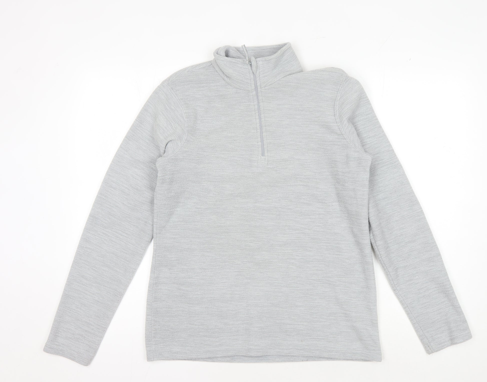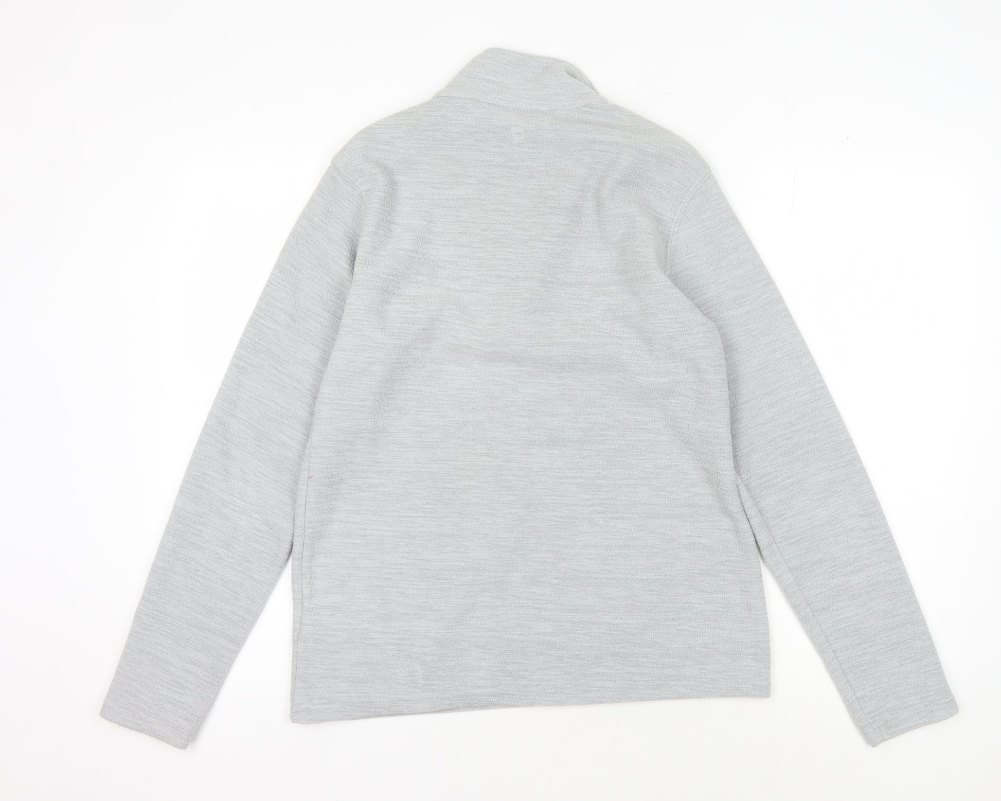 Introducing the Mountain Warehouse Grey Sweatshirt, a perfect blend of comfort and style for any casual or active occasion. Crafted from soft polyester fleece, this sweatshirt retains warmth while remaining breathable, making it ideal for all seasons. The versatile grey colour complements any outfit, while the high neckline and long sleeves offer added coverage on chillier days. Designed with a convenient 1/2 zip closure, this sweatshirt allows you to adjust ventilation easily. Its regular fit and elastic waist provide a comfortable and flattering silhouette, suitable for everyday wear or your next workout session. Fully machine washable, caring for this garment is effortless, ensuring that it stays looking fresh and new with minimal effort. Whether you're heading out for a day of errands or gearing up for a brisk morning run, this Mountain Warehouse sweatshirt is a reliable and stylish choice.