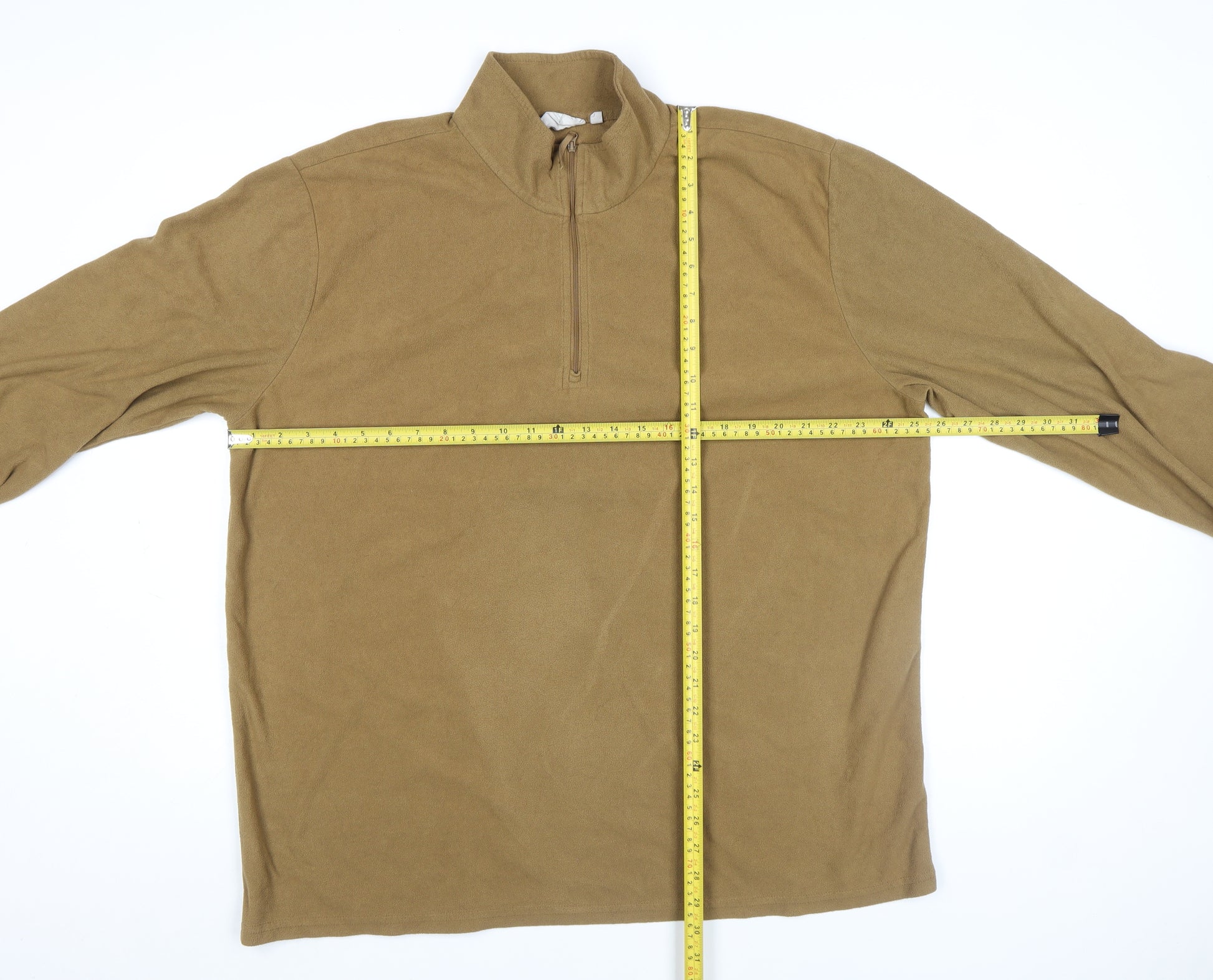 Men Brown Fleece 1/4 Zip Pullover L Long Sleeve