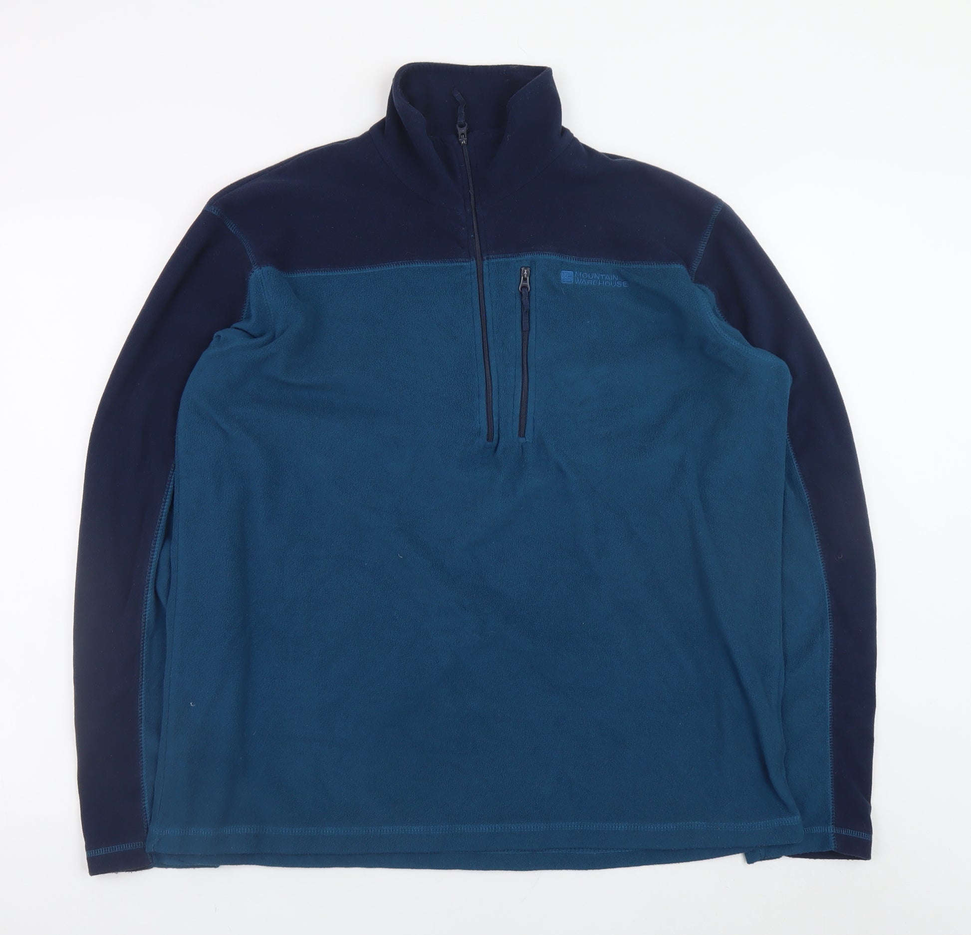 Stay warm and comfortable in this Mountain Warehouse men's half zip fleece sweatshirt, designed with practicality and outdoor performance in mind. Crafted from soft 100% polyester fleece, this pullover ensures lightweight warmth and breathability, ideal for layering on chilly days. The high neck design provides added protection from the cold, while the half zip closure offers adjustable ventilation. The deep blue tone with contrasting navy panels gives it a stylish, versatile look that pairs easily with jeans or hiking trousers. Built for active use, this fleece is perfect for hiking, walking, camping, and everyday outdoor adventures. Its moisture-wicking properties help keep you dry and comfortable, and the soft brushed texture ensures warmth without bulk. The regular fit provides flexibility for movement, making it suitable for layering over base garments. Designed in the UK and made to withstand outdoor conditions, this Mountain Warehouse fleece brings together function, comfort, and casual style for both activity and leisure. Whether you’re hitting the trails or simply stepping out on a crisp day, this fleece will be your go-to layer for reliable warmth and understated style. Machine washable for easy care and built to last, it’s an all-seasons essential for any active wardrobe.