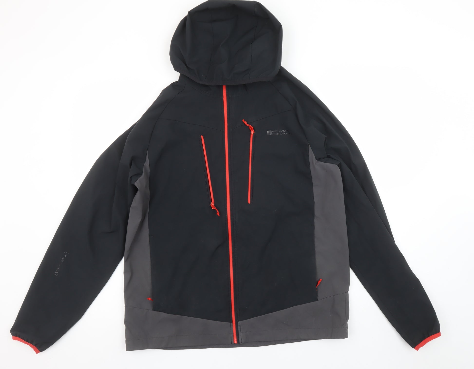 Stay protected and comfortable on all your outdoor adventures with this Mountain Warehouse men's black softshell jacket in size M. Created for performance and designed for adventure, this versatile jacket is both water resistant and windproof, making it ideal for unpredictable British weather. Crafted from high-quality 100% polyester fabric, the softshell construction delivers durability, breathability and flexibility for active lifestyles. The lightweight design ensures comfort whether you're hiking, walking or commuting. The jacket features a full zip closure, practical zipped pockets for secure storage, and a hood for added protection against the elements. Its sleek black and grey colour combination with red zip accents adds a stylish outdoor-inspired look. The stand-up collar and mid-length cut provide extra coverage, while the regular fit ensures easy layering over base or mid layers. Made for the modern adventurer, this jacket performs just as well in city settings as it does on rural trails. The high-performance materials make it easy to care for, as it is machine washable and quick drying. Though previously owned, it remains in excellent condition with no visible signs of wear or damage. This is a dependable, affordable choice for anyone seeking a quality softshell jacket with outdoor-ready functionality. Ideal for spring, autumn, and mild winter days, this piece blends technical features with casual wearability. Whether you’re off hiking, cycling, or heading out in changeable weather, this Mountain Warehouse softshell jacket offers the right combination of comfort, protection, and value. Add this reliable outerwear piece to your wardrobe and enjoy lightweight defence from wind and rain without compromising on mobility or style.