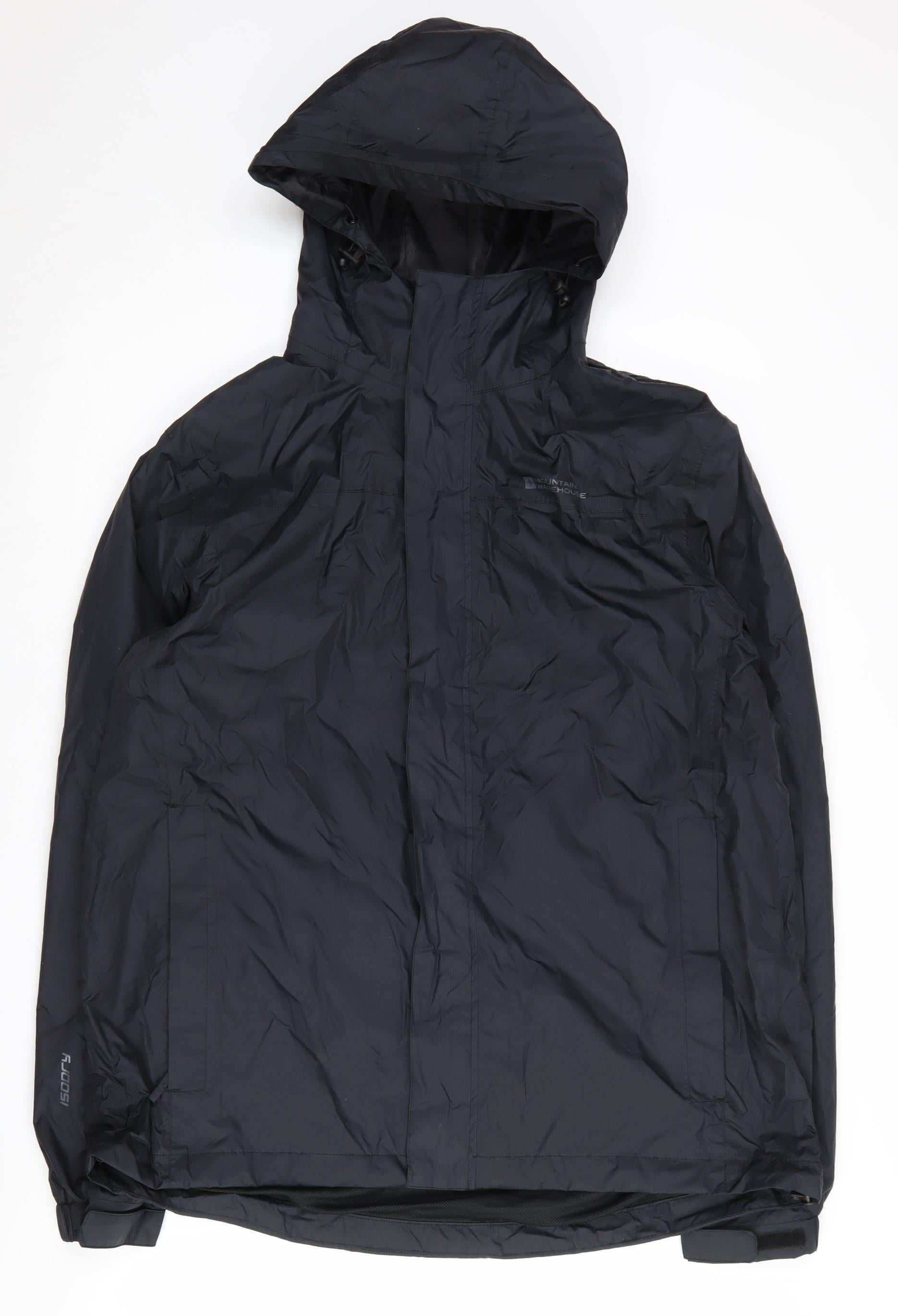 Stay dry and comfortable with the Mountain Warehouse Men's Waterproof Rain Jacket. Designed in classic black, this mid-length rain coat is perfect for outdoor enthusiasts who value both style and functionality. Crafted with a durable polyamide outer shell, it ensures long-lasting protection against the elements. The jacket features essential waterproof capabilities and taped seams to keep you dry during unpredictable weather conditions. Lightweight and hooded, it offers flexibility for various outdoor activities such as hiking, while maintaining comfort during autumn, spring, and summer. With a regular fit and stand-up collar, this jacket provides a contemporary look without compromising on practicality. It's machine washable for easy care, designed to be effortlessly packable for travel and casual outings. Although in excellent condition with no visible wear marks, please note it is not brand new. Priced affordably, this Mountain Warehouse jacket is a must-have for anyone seeking reliable outerwear for their adventures.