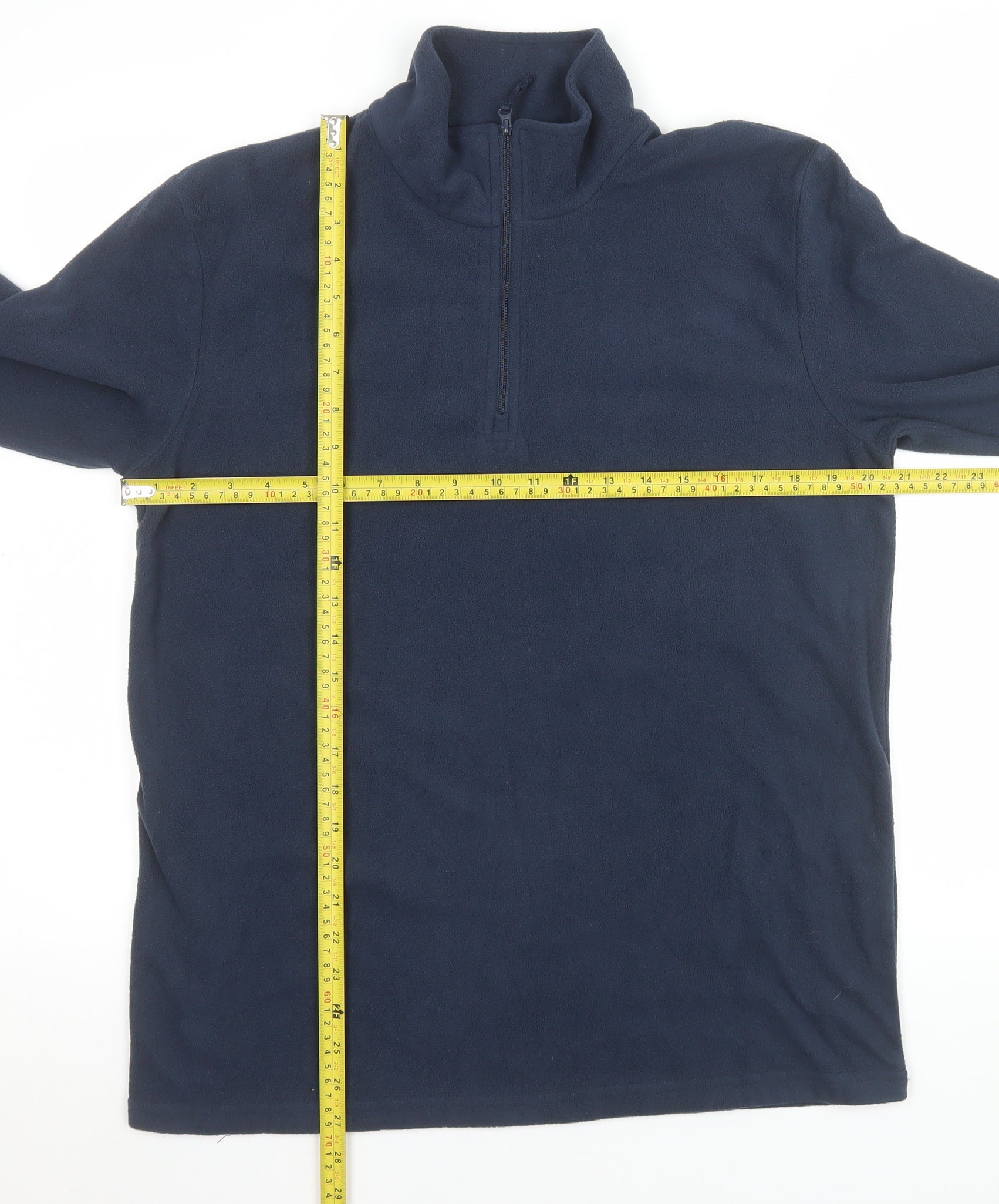 Stay warm and comfortable on chilly days with this Mountain Warehouse men's blue fleece pullover sweatshirt. Designed for outdoor performance and casual everyday wear, this versatile fleece offers soft and gentle comfort against the skin while maintaining excellent warmth and breathability. The lightweight 100% polyester fleece fabric ensures cosy insulation without adding unnecessary bulk, making it ideal for layering over a t-shirt or beneath a waterproof jacket. Featuring a 1/4 zip-up high neckline, it provides quick and easy temperature control, perfect for active pursuits such as hiking, walking, or other outdoor adventures. The deep navy-blue colour adds a classic and easy-to-match look suitable for year-round wear in autumn, spring and winter. Thoughtfully constructed with a regular fit and long sleeves, this sweatshirt delivers both style and practicality with a modern outdoor appeal. The breathable fleece material promotes airflow to keep you comfortable whether you’re exploring the outdoors, commuting, or relaxing at home. Its machine washable design ensures easy care and long-lasting durability, making it a reliable wardrobe favourite for outdoor enthusiasts and those who appreciate functional fashion. This piece reflects Mountain Warehouse’s commitment to designing adventure-ready apparel that balances performance and comfort. Perfect for layering, everyday errands, or brisk countryside walks, it retains its shape and softness wash after wash. In excellent pre-owned condition with only minimal signs of wear, this fleece offers great value for money for anyone seeking dependable warmth and timeless design. Whether for outdoor activities or casual weekend wear, this fleece pullover sweatshirt is a practical must-have addition to any wardrobe. Ready to keep you comfortable through unpredictable British weather, it’s a dependable essential for men who enjoy simplicity, comfort, and quality in their clothing.