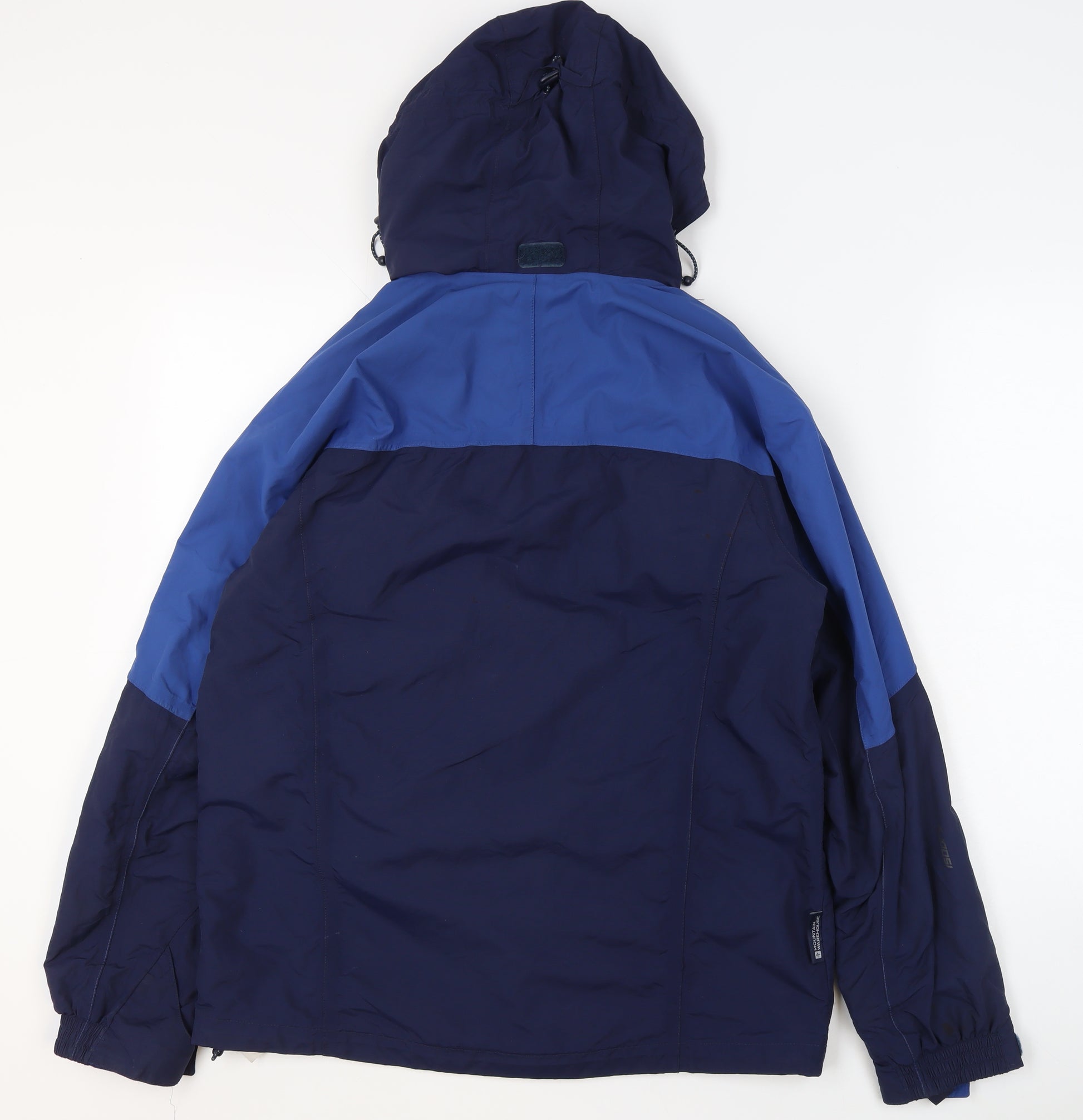 Stay dry and comfortable with this Mountain Warehouse men's hooded parka jacket in navy and cobalt blue tones. Designed for all-weather performance, this jacket features a fully waterproof, breathable nylon outer shell combined with taped seams to seal out moisture. The hood is adjustable for added protection, while a full zip fastening with hook and loop storm flap keeps wind and rain at bay. Two secure exterior pockets add practicality and convenience, perfect for outdoor walks, commuting, or hiking. Lined with soft polyester, the jacket provides comfort and warmth for cooler conditions, making it ideal for autumn and winter wear. The regular fit allows easy layering, and the mid-length coverage offers reliable protection without restricting movement. Subtle Mountain Warehouse branding at the chest completes its functional outdoor aesthetic. This classic jacket is machine washable for easy care and crafted to endure the elements, keeping you stylish yet prepared for unpredictable British weather. In excellent condition with minimal signs of previous wear, it’s a top-quality choice for anyone seeking durability and dependability in their outerwear. Whether you’re exploring the countryside, facing a rainy commute, or travelling, this versatile parka is a must-have addition to any man’s wardrobe, blending performance, practicality, and timeless outdoor style.