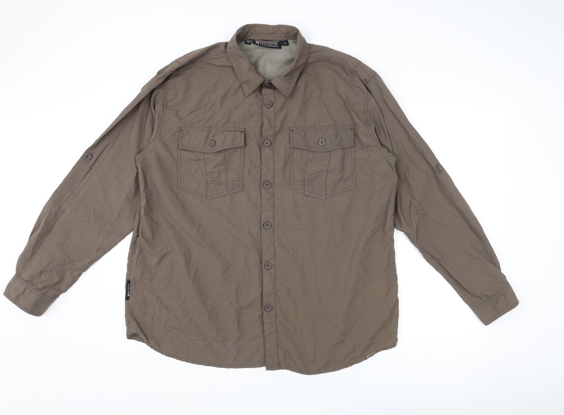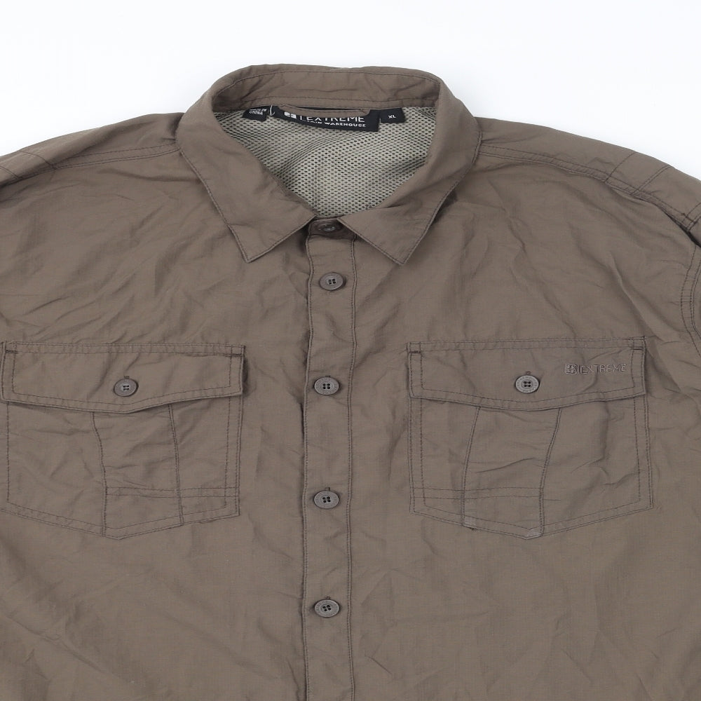 Mens Brown Polyester Button-Up Size XL Collared Button