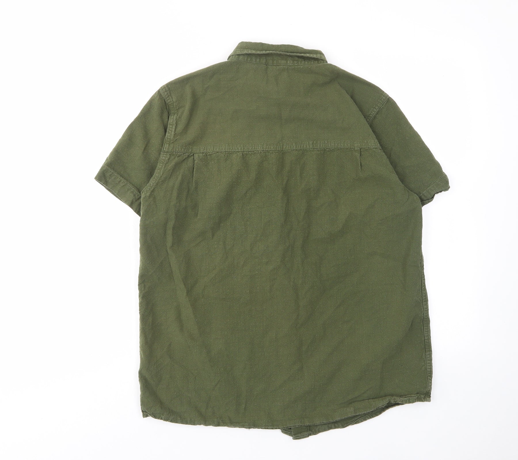 Mens Green Cotton Button-Up Size M Collared Button - Zip Pocket