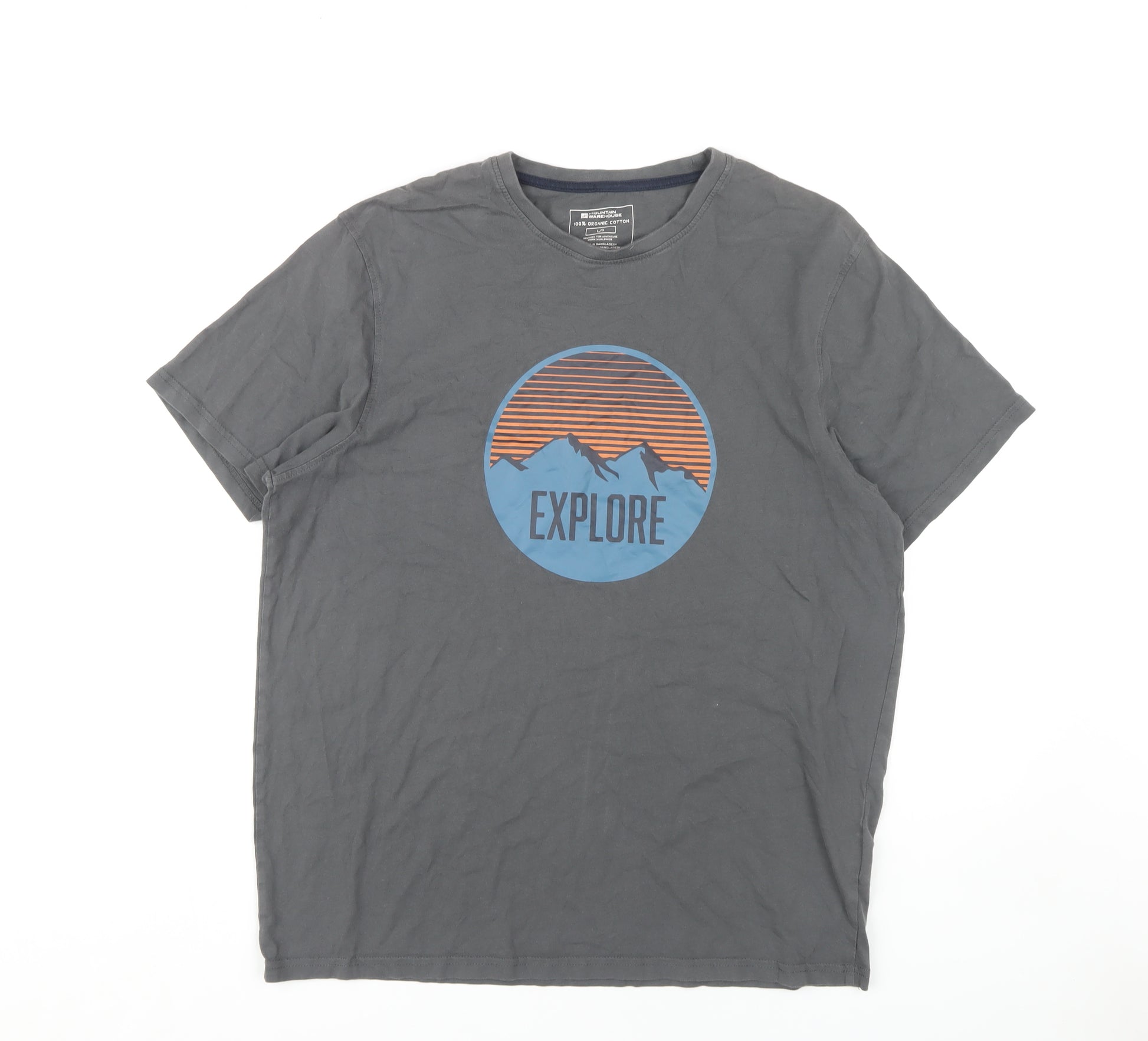 Explore the outdoors in style with this Mountain Warehouse men's T-shirt. Crafted from 100% organic cotton, this comfortable crew neck T-shirt is perfect for a casual day out. The grey colour is complemented by a striking graphic print that features a mountain and the word 'Explore', making it ideal for anyone who enjoys adventure and outdoor activities. With short sleeves, this T-shirt is suitable for all seasons and versatile enough to pair with your favourite jeans or shorts. Whether you're heading to the hills or just lounging at home, this T-shirt offers style and comfort in one package. Machine washable for easy care, it's a practical addition to your wardrobe. In excellent condition, this T-shirt shows no signs of wear, though it does not come with original tags. Add this essential piece to your collection and embrace the spirit of exploration.