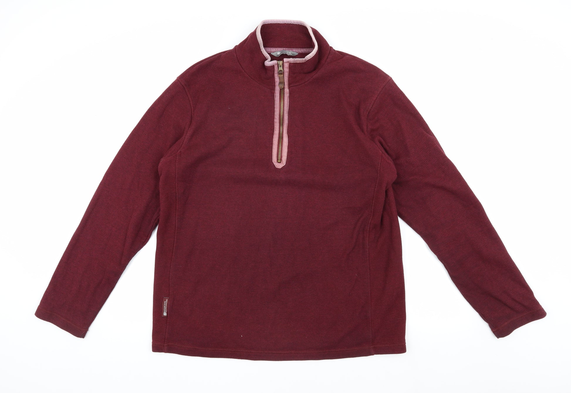 Embrace the chill with this Mountain Warehouse Men's 1/4 Zip Fleece Sweatshirt. Designed in a vibrant red hue, this sweatshirt effortlessly blends style with function, making it a wardrobe essential for any active male. Constructed from high-quality polyester fleece, it promises both warmth and durability, ensuring you stay comfortable throughout the colder months. Its long sleeves and mock neck provide additional warmth and protection against the elements, while its regular fit ensures it flatters any body type without compromising on comfort. Perfect for hiking, running, or jogging, its lightweight design makes it ideal for outdoor activities. The classic 1/4 zip closure offers ease of wear and adjustable ventilation, catering to your comfort. Machine washable for convenient care, this sweatshirt is made for everyday wear. Though in excellent condition with minor wear, this piece is ready to accompany you on adventures both urban and natural. Don't miss out on the chance to own such a versatile and stylish sweatshirt at an incredible value.