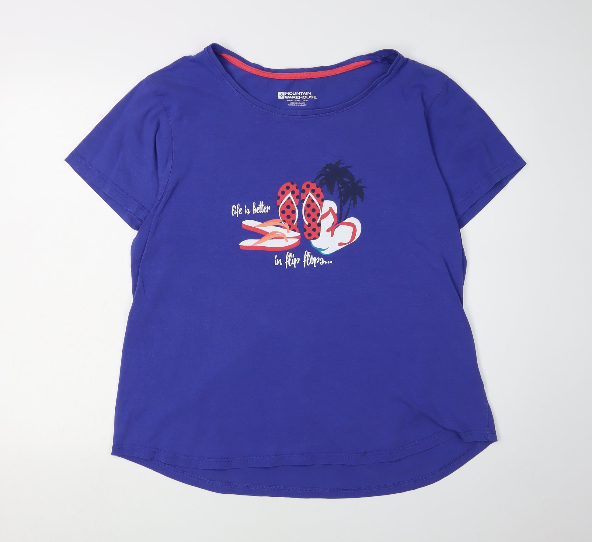 This Mountain Warehouse Women's T-Shirt in classic blue is perfect for casual summer outings. Featuring a comfortable crew neck and short sleeves, it provides a relaxed fit that's ideal for warm days. The lightweight jersey fabric is made from 100% cotton, ensuring breathability and comfort throughout the day. The stylish graphic accent gives it a beach-themed vibe that's both playful and fun. Available in a regular size 20, this top suits those who appreciate ease and functionality. With its solid pattern, this basic T-shirt pairs well with a variety of bottoms, making it a versatile addition to your wardrobe. Whether you're heading to the beach or enjoying a leisurely day in town, this T-shirt is a delightful choice. Machine washable for easy care, it maintains its look and feel wash after wash. In excellent condition with no visible flaws, it's a fantastic find for anyone seeking quality and style. Embrace the summer vibes with this charming piece, perfect for those who love life in flip flops.