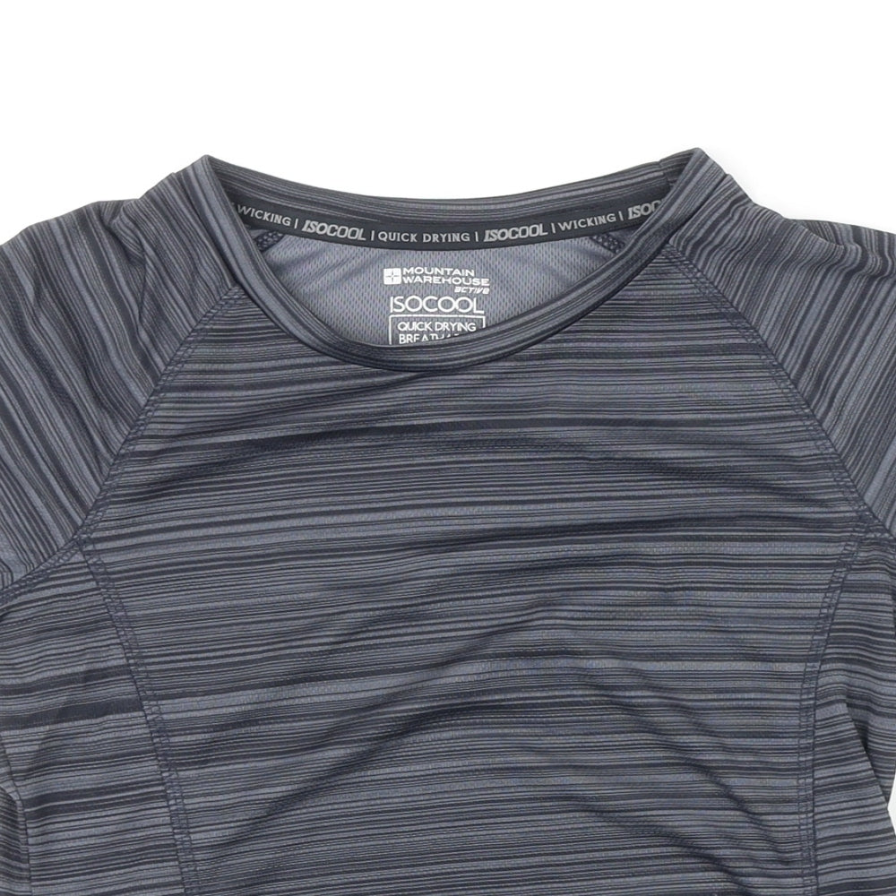 Womens Grey Striped Polyester Basic T-Shirt Size 6 Round Neck