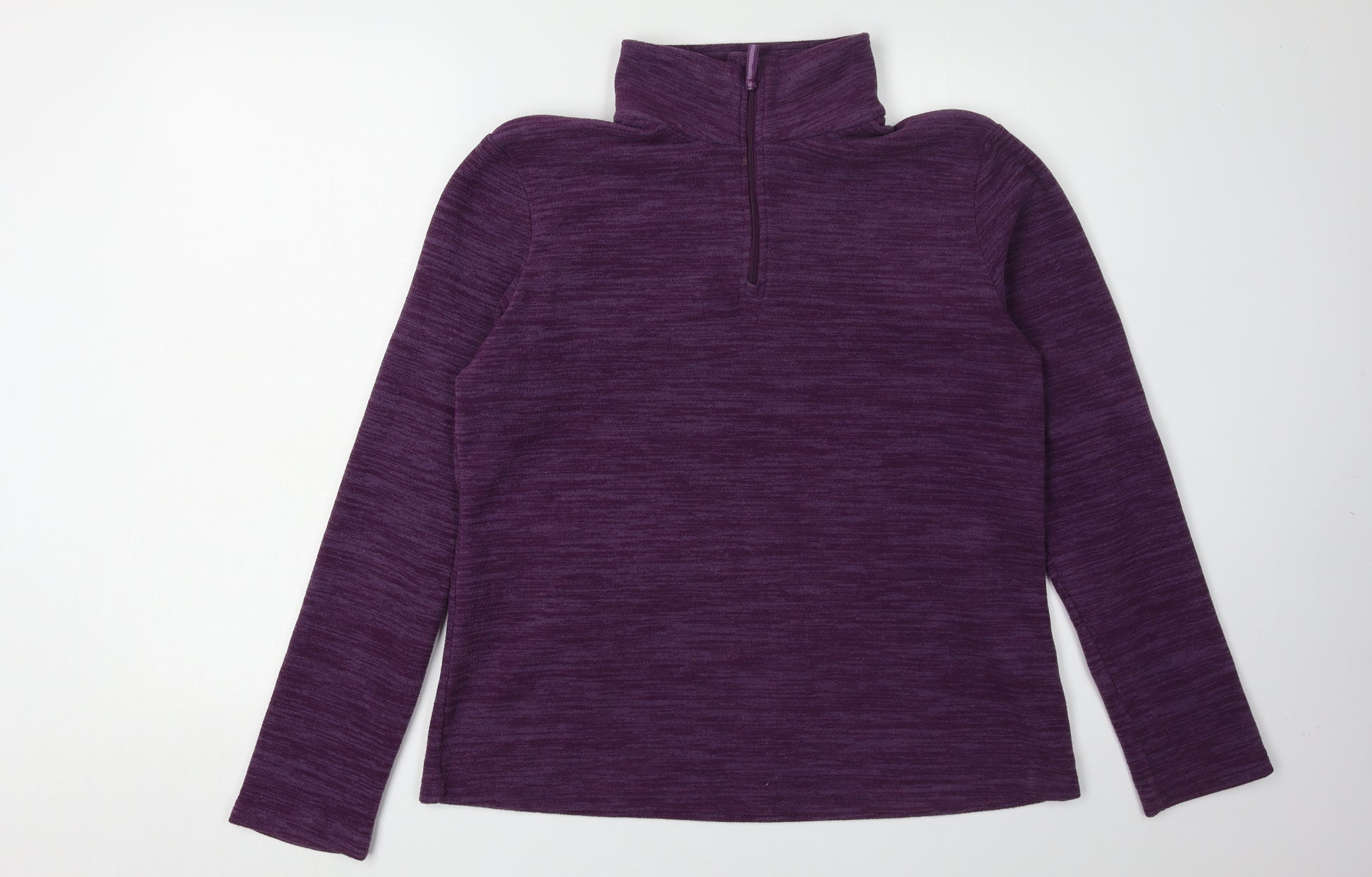 Discover the comfort and style of this Women's Purple Mountain Warehouse Sweatshirt. With its chic high neck and convenient 1/2 zip closure, this sweatshirt is perfect for all seasons and adaptable to any casual occasion. Crafted from 100% polyester, it promises durability and easy care, allowing for machine washing without compromising quality. Its vibrant purple hue makes a bold fashion statement, while the long sleeves provide ample warmth and coverage as the weather cools. Look effortlessly stylish whether you're heading out for a walk, running errands, or just lounging at home. An ideal pick for the fashion-forward woman who values both comfort and style.