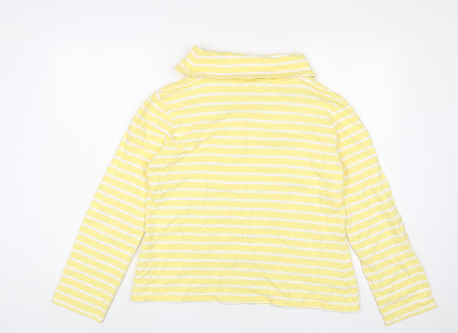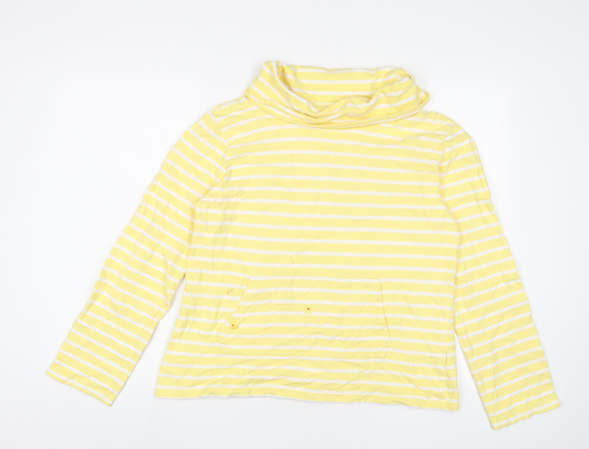 Womens Yellow Striped Cotton Pullover Sweatshirt Size 14 Pullover - Embroidered