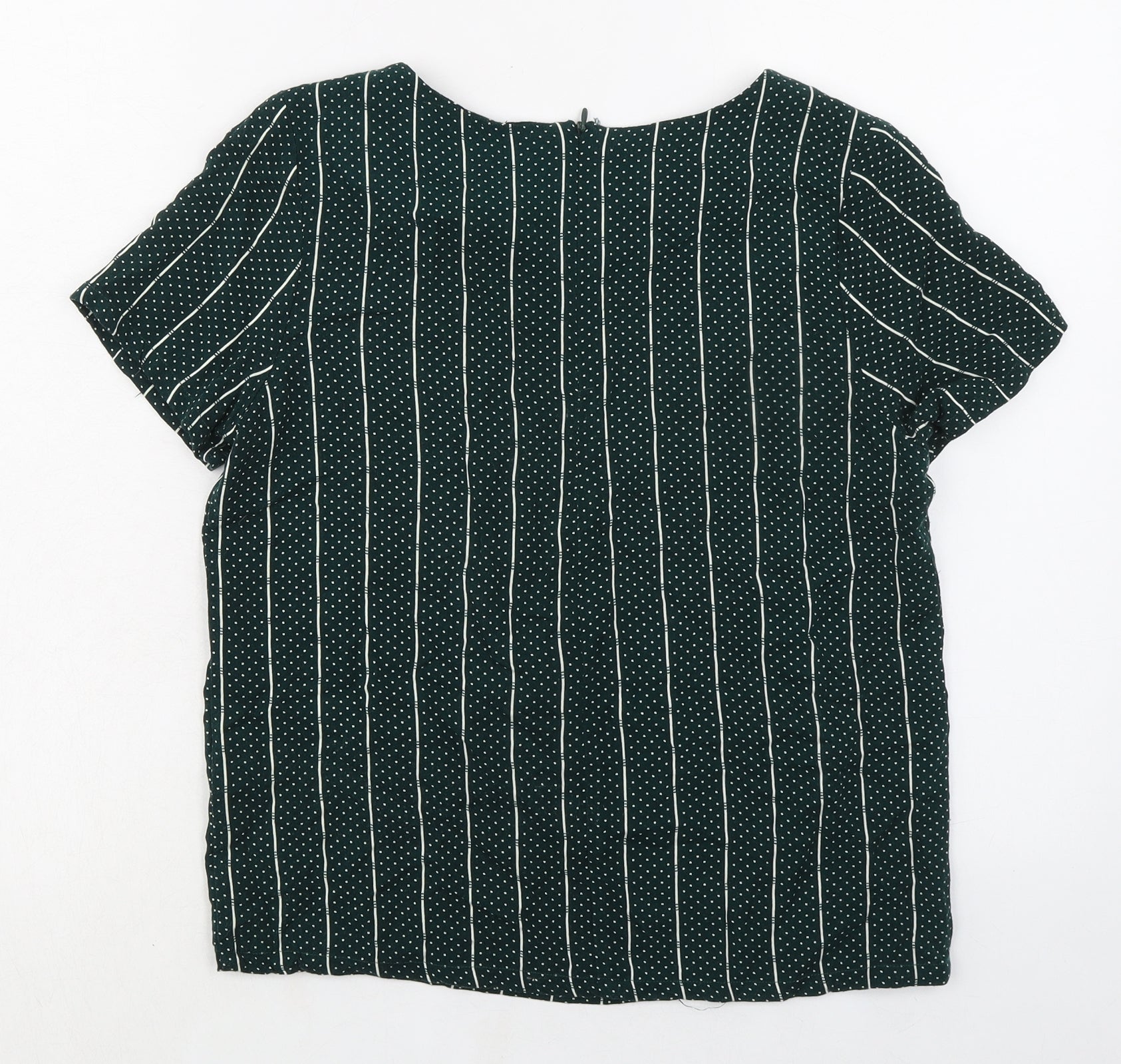 Womens Green Striped Viscose Basic Blouse Size 6 Boat Neck