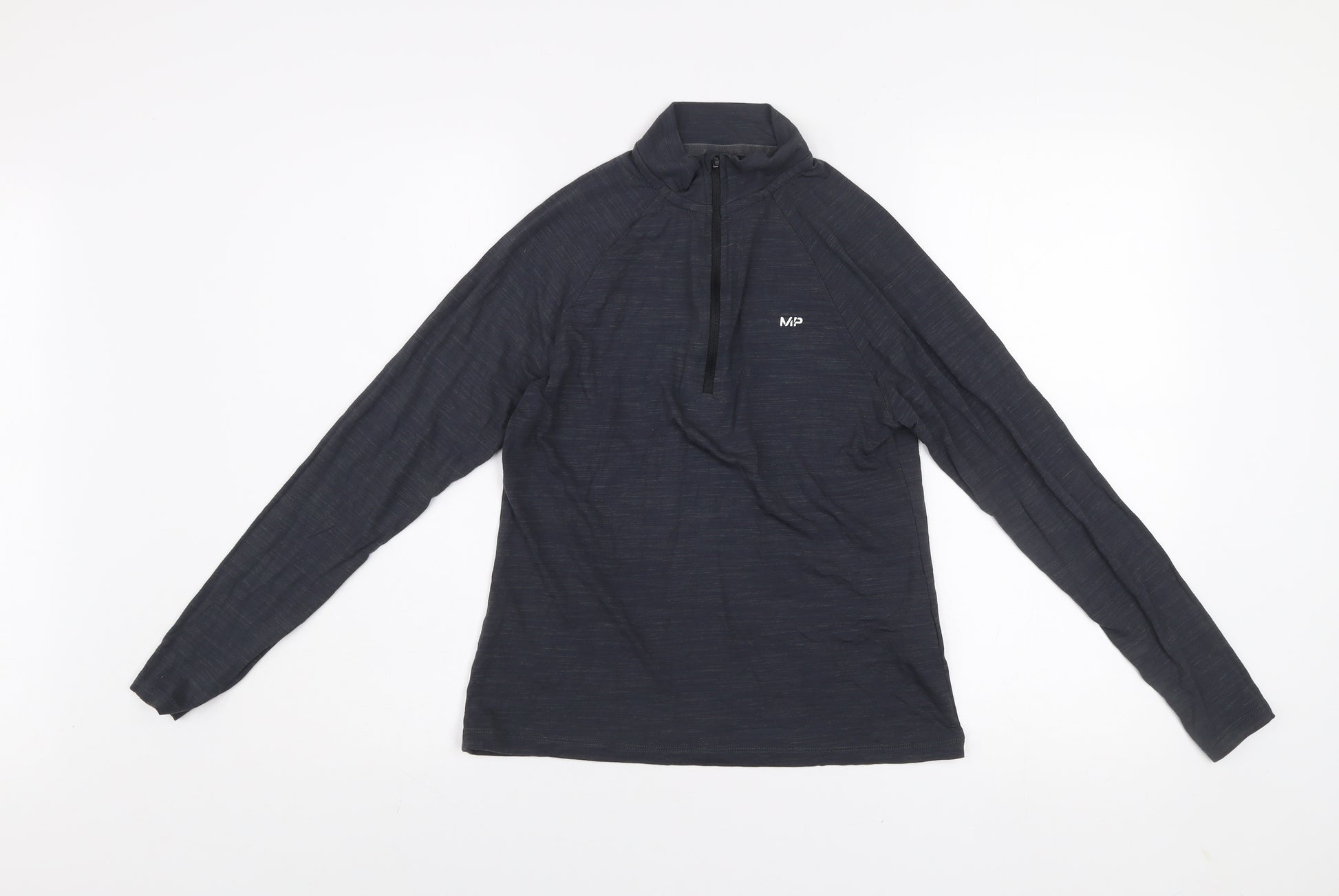 Upgrade your activewear collection with this sleek and lightweight MP women's black long sleeve activewear top, designed to keep you comfortable and stylish during every workout. Featuring a flattering slim fit with raglan sleeves for enhanced range of motion, this top is ideal for running, yoga, or gym training sessions. The soft jersey blend fabric crafted from viscose, polyester, and elastane ensures breathability, stretch, and a comfortable feel against the skin, while effectively managing moisture to keep you dry. The contemporary design is enhanced by a subtle MP logo on the chest, a high neck with a functional 1/4 zip for adjustable ventilation, and a clean, minimal aesthetic that pairs seamlessly with leggings or joggers. Perfect for cooler months or layering under jackets, this top provides a balance of performance and everyday comfort. Machine washable and durable, it’s a versatile essential suited for both fitness and leisure. In excellent pre-loved condition, there are no marks or signs of damage, making it a smart, sustainable addition to your wardrobe. Ideal for women who want both practicality and style in their activewear. Whether for warming up, cooling down, or casual wear, this MP top delivers the performance quality you expect with a sleek, modern silhouette designed in the UK and made in Turkey. Add this timeless piece to your rotation and enjoy the blend of technical fabric with all-day comfort for an effortlessly chic active look.