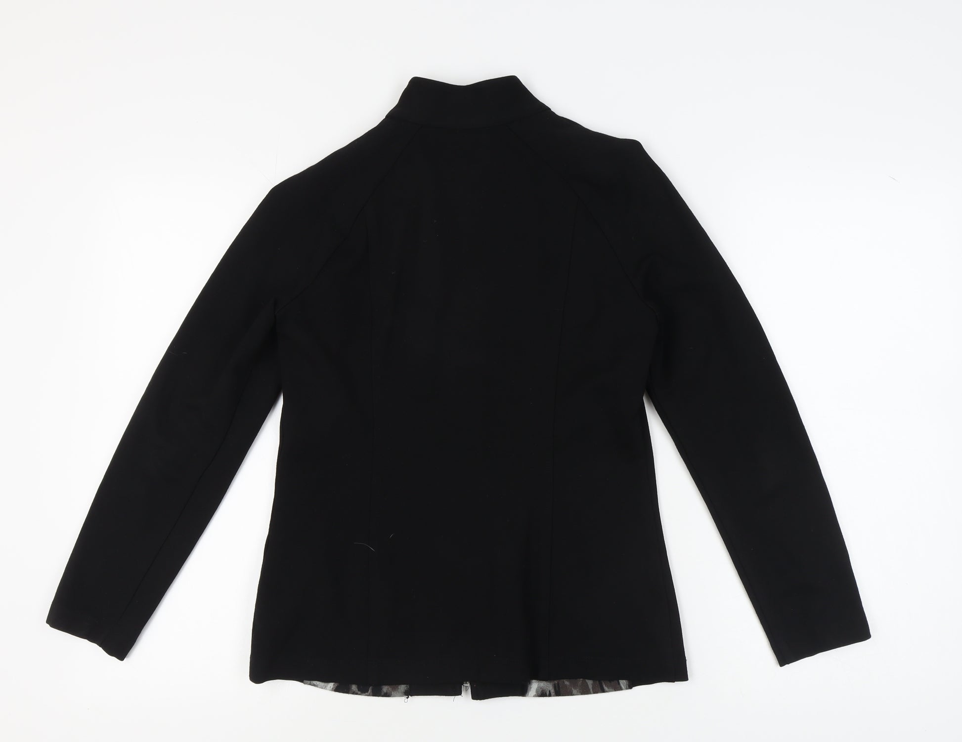 Ease yourself into style with this Mr. Max women's sweatshirt, a chic addition that blends comfort and elegance. Crafted in classic black with an eye-catching animal print, it is perfect for cooler seasons like autumn and winter. The full zip design and high neck add a modern twist, while the polyester, elastane, and nylon mix ensures a pleasant fit. This sweatshirt is ideal for casual occasions, complementing both laid-back and polished looks. With its raglan sleeve construction and long sleeves, it caters to the fashion-forward woman seeking warmth and style. Easy to care for, it's machine washable, keeping maintenance to a minimum. Available in a versatile XS size, it promises adaptability for any ensemble. Given its excellent condition and no signs of wear, this piece holds the promise of becoming a staple in your wardrobe.