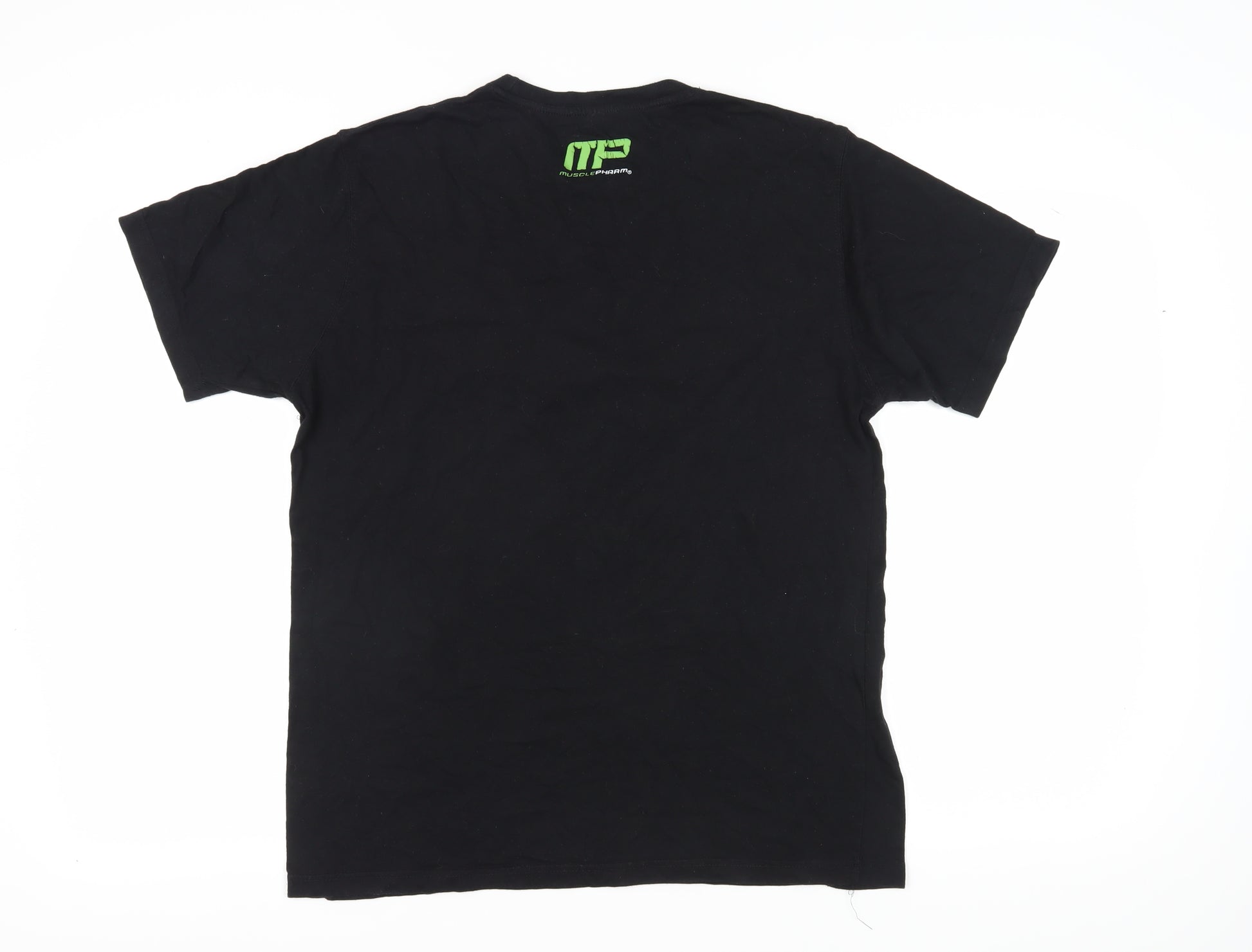 Elevate your casual wardrobe with this Men's MusclePharm T-Shirt, perfect for fitness enthusiasts and brand lovers alike. Crafted from 100% cotton, this jersey fabric tee ensures maximum comfort and breathability, making it ideal for daily wear or workouts. The classic crew neck design and short sleeves offer a relaxed fit, while the striking black color serves as an excellent backdrop for the bold green 'MP' logo, creating a distinctive graphic print that stands out. This T-shirt fits regular size and is machine washable, ensuring easy maintenance and longevity. Its all-season versatility adds to its practical appeal, making it suitable for various occasions. Slightly used but in excellent condition, this MusclePharm T-Shirt promises durability and style, ready to complement your sporty look. Grab this piece for just £12.00 and embrace a mix of comfort and iconic style.