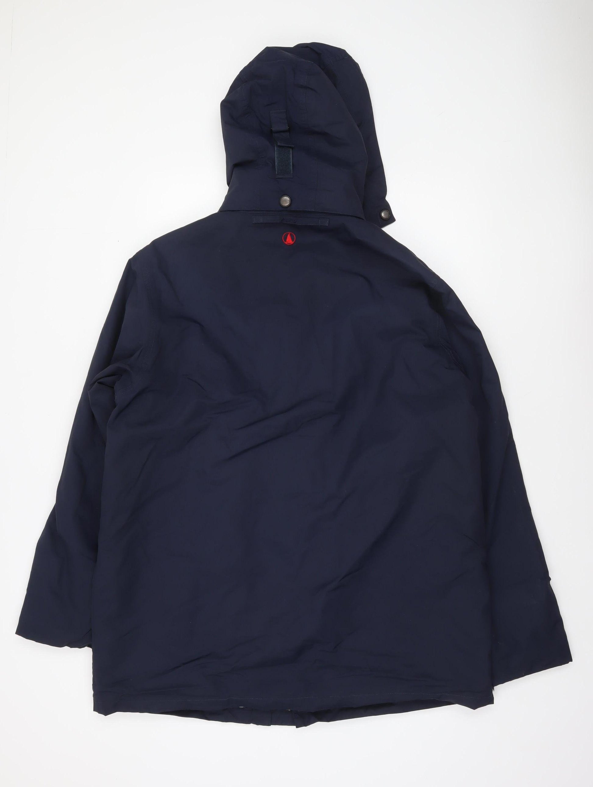 Stay warm, dry, and stylish whatever the weather with this Musto Men’s Blue Waterproof Hooded Parka Jacket in size XL. Renowned for their sailing and performance outerwear, Musto brings practical protection and understated style to this Red Yacht Ocean Issue design. Crafted from a durable shell fabric made up of 60% nylon and 40% polyurethane, it provides the ideal combination of strength, flexibility, and water resistance. Inside, the jacket is lined with smooth nylon and padded with insulating polyester wadding, ensuring comfort and warmth even in challenging conditions.The jacket features a classic navy blue tone, versatile enough for both everyday wear and outdoor pursuits. A full front zip with button storm flap offers secure closure against the elements, while a detachable hood offers additional coverage when needed. Front patch pockets add both utility and casual style, making it convenient for those on the move. Its mid-length cut balances coverage with freedom of movement, and the regular fit complements layers underneath without bulk.Ideal for outdoor adventures, travel, or everyday wear, this coat showcases Musto's expertise in crafting garments built to perform in adverse weather while maintaining a polished look. Designed for men who value both form and function, it’s suitable for sailing, hiking, or simply walking through windy or wet climates. This particular piece remains in excellent pre-owned condition with only light general wear and no visible flaws. Its combination of quality materials, engineered design, and timeless appeal makes it a smart and sustainable wardrobe investment.Whether layered over casual knitwear or technical base layers, the Musto Red Yacht Parka withstands seasonal elements with ease. Durable, water-repellent, and windproof, it’s a reliable outerwear staple built to deliver long-lasting performance with classic nautical flair.