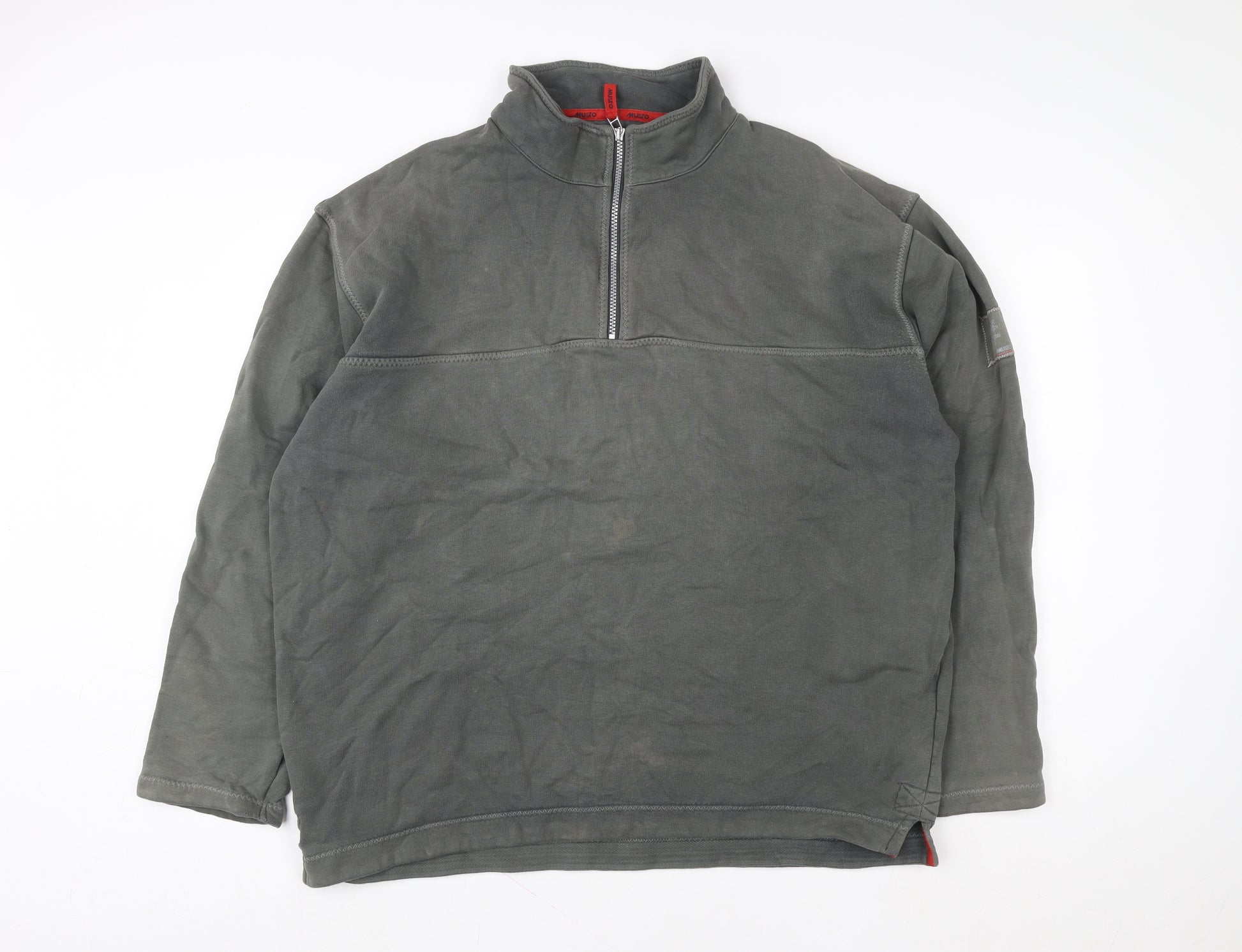 Add a versatile layer to your wardrobe with this Musto Men's Grey 1/4 Zip Cotton Sweatshirt in size Medium. Crafted from 100% cotton, this sweatshirt delivers breathable comfort and effortless style. The soft fleece-like interior provides warmth during cooler months, while the high neck and quarter zip closure give it a practical, sporty edge. The mid-grey tone, accented with Musto branding details and subtle red lining trim, adds a modern touch that complements jeans, chinos, or outdoor trousers alike.This sweatshirt is designed for everyday comfort and performance. Whether worn as a standalone piece or layered over a tee, its relaxed Regular Fit cut ensures freedom of movement and a flattering shape. The 1/4 zip design allows for ventilation when needed, making it suitable for autumn, spring, and winter adventures. Ideal for outdoor activities such as sailing, hiking, or walking, this piece reflects Musto’s heritage of engineered durability and timeless nautical influence.Featuring logo and zip accents, the sweatshirt carries Musto’s quality craftsmanship throughout, with sturdy stitching at key points for durability. The breathable cotton fabric keeps you comfortable across seasons, while the clean, minimalist design ensures it pairs effortlessly with both casual and performance wear. The garment’s fleece texture and neutral grey shade make it a wardrobe staple that stands up equally well to weekend leisure or everyday wear.Previously owned but in very good condition, this Musto sweatshirt shows only light signs of use with no visible flaws or damage. For those who appreciate durable, quality-made apparel with a maritime influence, this Musto 1/4 Zip Sweatshirt is a dependable and stylish choice. Priced attractively for premium craftsmanship, it’s a piece built to last and perfect for anyone seeking comfort, practicality, and understated British style in their casual wear.