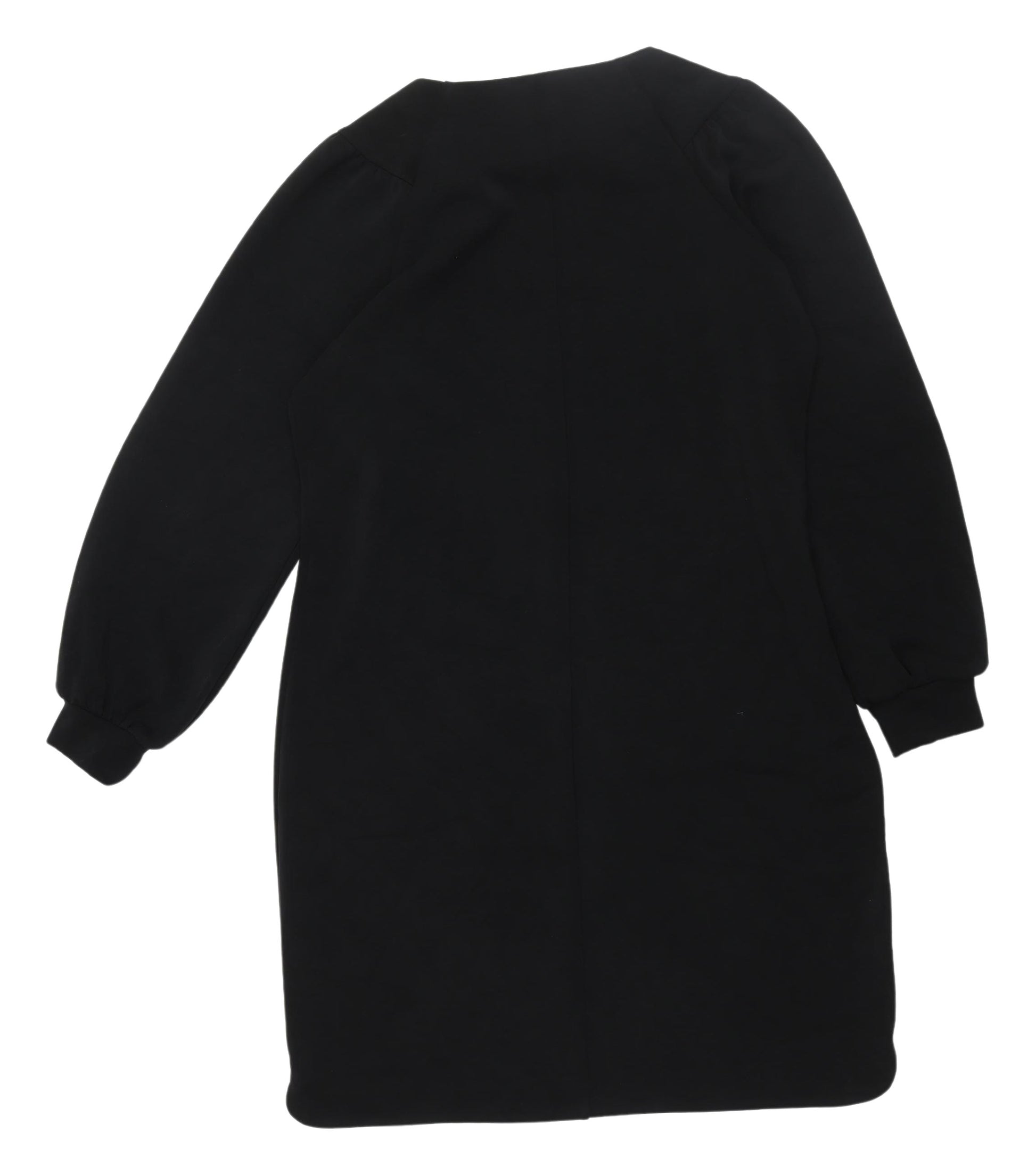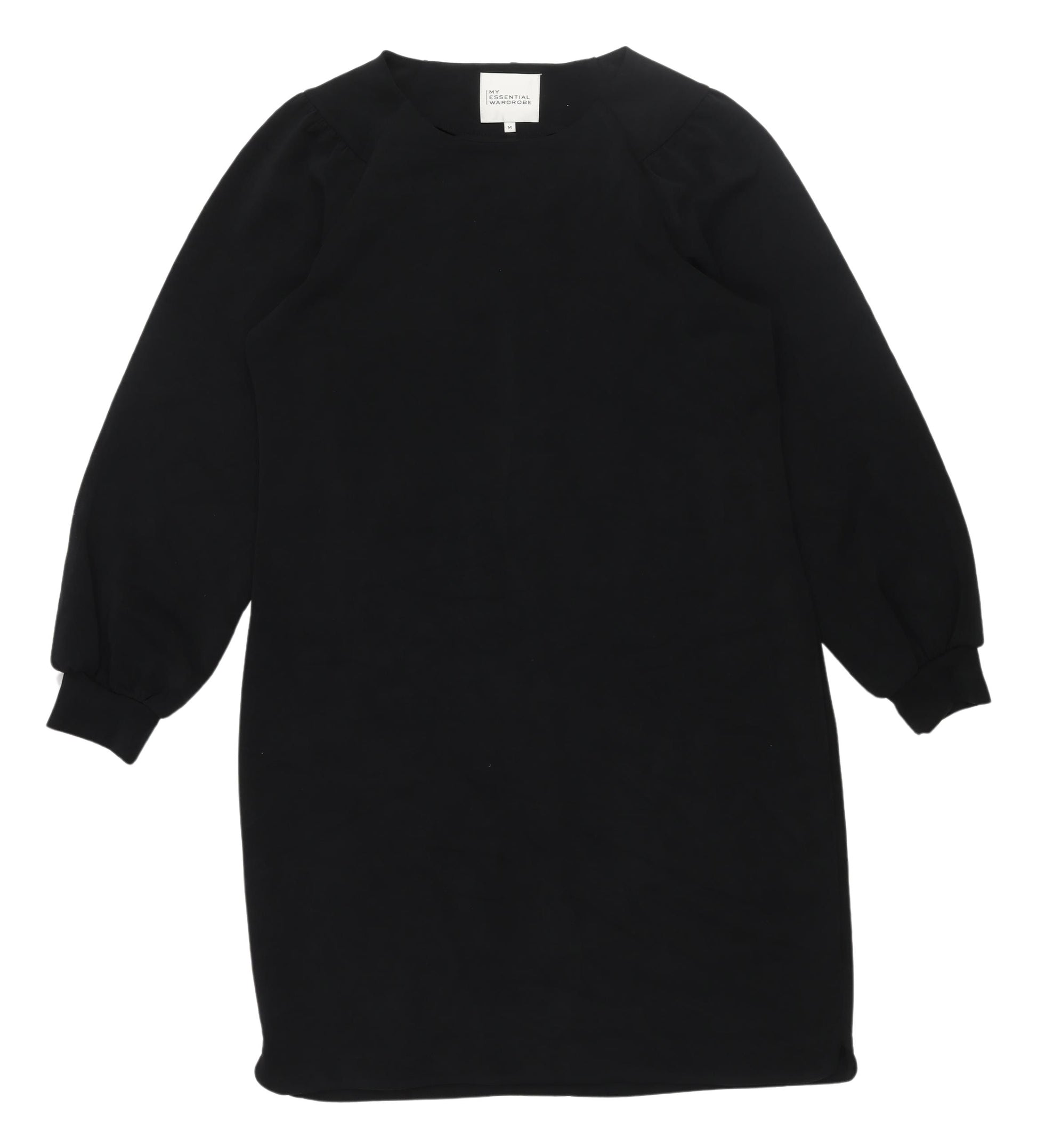 This elegant black shift dress from My Essential Wardrobe is a versatile piece perfect for any casual outing. Crafted from a blend of modal, polyester, and elastane, this dress is both comfortable and stylish, offering a smooth and flexible fit. The crew neckline and raglan long sleeves add a touch of classic charm, making it a timeless addition to your wardrobe. The knit fabric ensures a soft feel against the skin while maintaining a lightweight structure, ideal for comfortable wear throughout the day. Designed with a focus on everyday elegance, this dress features a pullover closure for easy wearing and a clean silhouette. Its medium size fits true to form, catering to a standard UK fit. Whether you're stepping out for a casual lunch or a relaxed evening, this dress provides a refined yet laid-back look. Clean, minimalistic style makes it easy to pair with different accessories and footwear for any season. Machine washable for easy care, this garment promises durability along with style. In excellent condition, it shows no signs of wear, making it a perfect choice for someone who values quality and practicality.