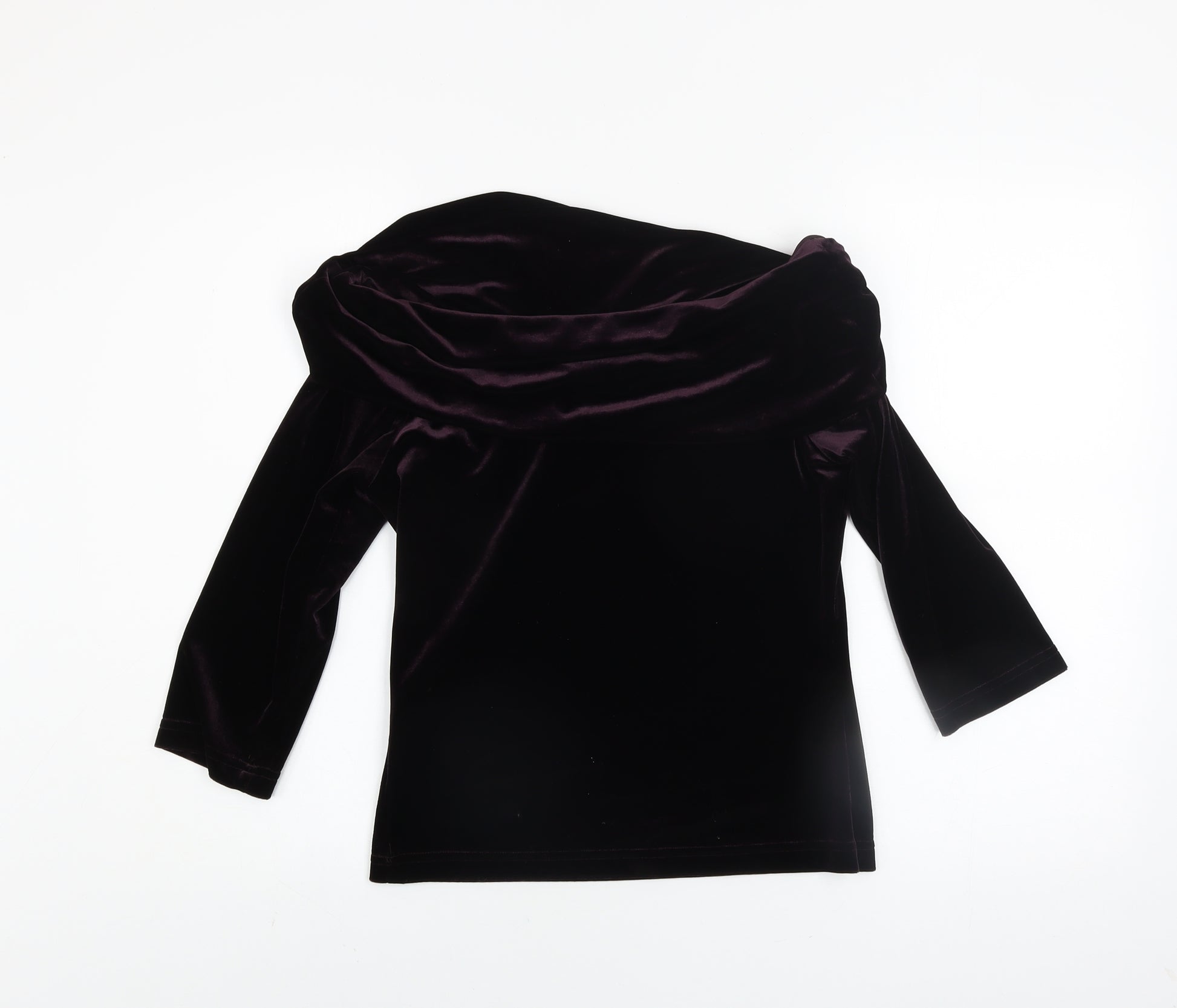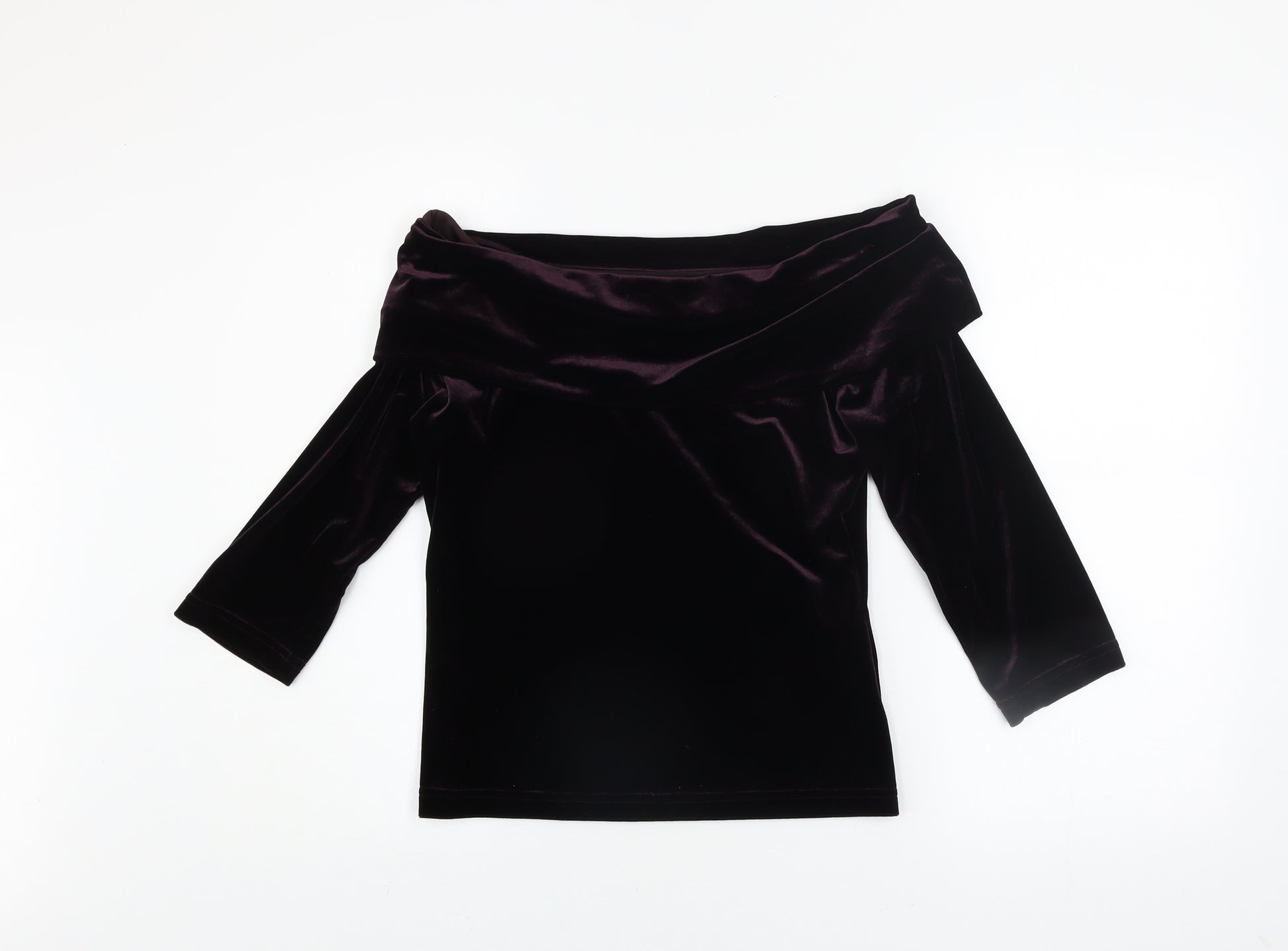 Elevate your evening wardrobe with this stunning purple velvet blouse from My Michelle. Designed for women who appreciate a chic yet comfortable fit, this off-the-shoulder top blends sophistication with a subtle touch of glamour. The luxurious velvet fabric brings a soft, rich texture that catches the light beautifully, making it ideal for both formal dinners and party occasions. Crafted from 90% polyester and 10% elastane, it offers just the right amount of stretch to contour gracefully to your silhouette without sacrificing ease of movement. The flattering off-the-shoulder neckline enhances femininity while the 3/4 sleeves add a modern, balanced look suitable for all-season wear—especially autumn and winter. The pullover style ensures effortless wearability, ideal for pairing with high-waisted skirts, tailored trousers, or elegant evening jeans for a timeless yet stylish ensemble. The regular fit maintains comfort while the tunic length adds versatility—perfect for layering with statement necklaces or bold accessories. Whether worn for a cocktail event, celebration, or dressy dinner, this blouse radiates understated sophistication. Made in the USA, the quality craftsmanship ensures lasting appeal and resilience. Despite showing only minimal, gentle signs of wear, the condition remains excellent with no visible marks or imperfections. A classic, solid-coloured piece that’s both elegant and versatile, this My Michelle off-shoulder velvet blouse makes an effortless addition to any modern woman’s wardrobe. Capture attention and comfort in one polished look that transitions beautifully from day to night.