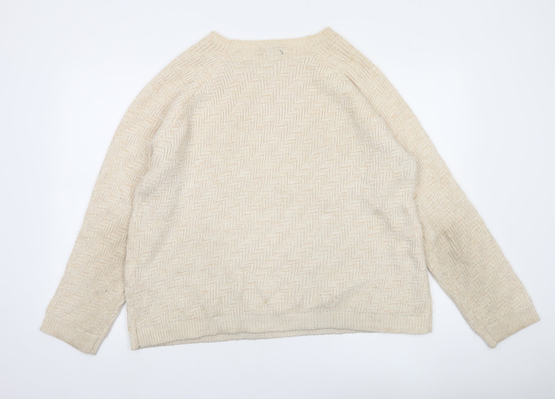Womens Beige XL Pullover Knit Jumper Herringbone Crew Neck
