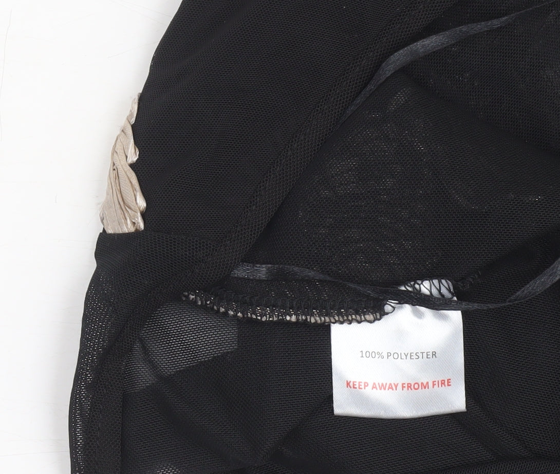 Bring a touch of alluring elegance to your wardrobe with this stunning NAANAA black floral bodysuit, designed to make a striking impression at any occasion. Crafted from lightweight and sheer mesh fabric, this sleeveless halter neck piece features a slim, figure-hugging fit that beautifully contours your body shape. The elegant ivory embroidered floral detailing adds sophistication and contrast against the black mesh background, creating a romantic yet modern aesthetic that’s perfect for evening events, cocktail parties, or special nights out. The halter tie neckline adds a flattering touch, while the popper snap closure at the base provides ease of wear and comfort throughout the day or night. Made from 100% polyester, this bodysuit offers breathability and slight stretch, ensuring both durability and comfort. Pair this exquisite design with high-waisted tailored trousers, faux leather skirts, or denim for a chic statement look. Suitable for summer and transitional seasons, it offers style versatility for casual occasions or dressier nights out. With its bold and feminine embroidered accents and semi-sheer panels, this NAANAA piece showcases a perfect blend of contemporary edge and romantic charm. In excellent pre-owned condition with no visible flaws, this bodysuit is ideal for adding a standout statement to your collection at an exceptional value. Don’t miss the chance to invest in this alluring floral masterpiece that effortlessly transitions from day to evening wear with sophistication and flair.