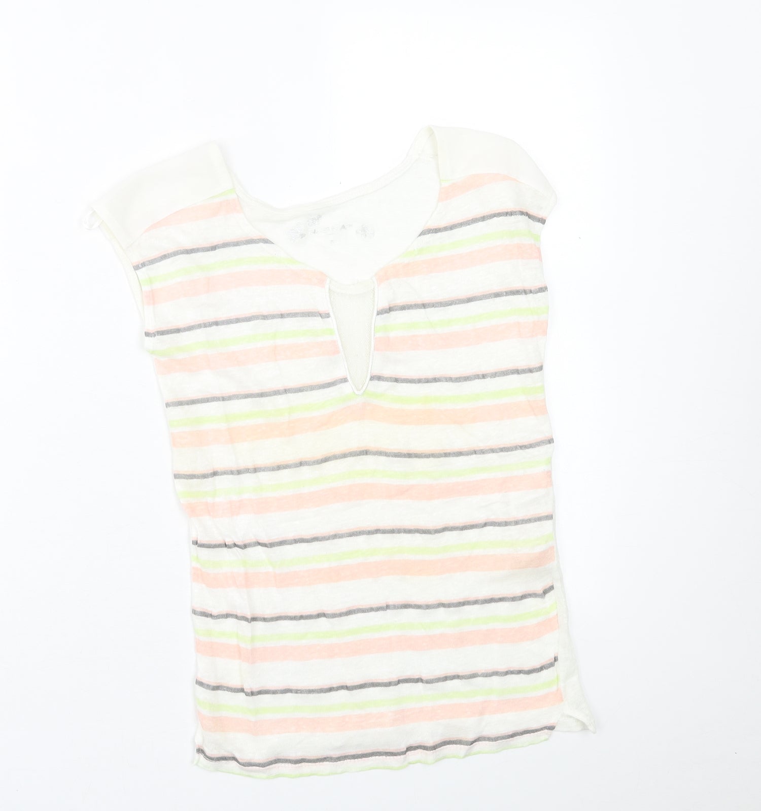 Womens Multicoloured Striped Linen Basic T-Shirt Size S Crew Neck