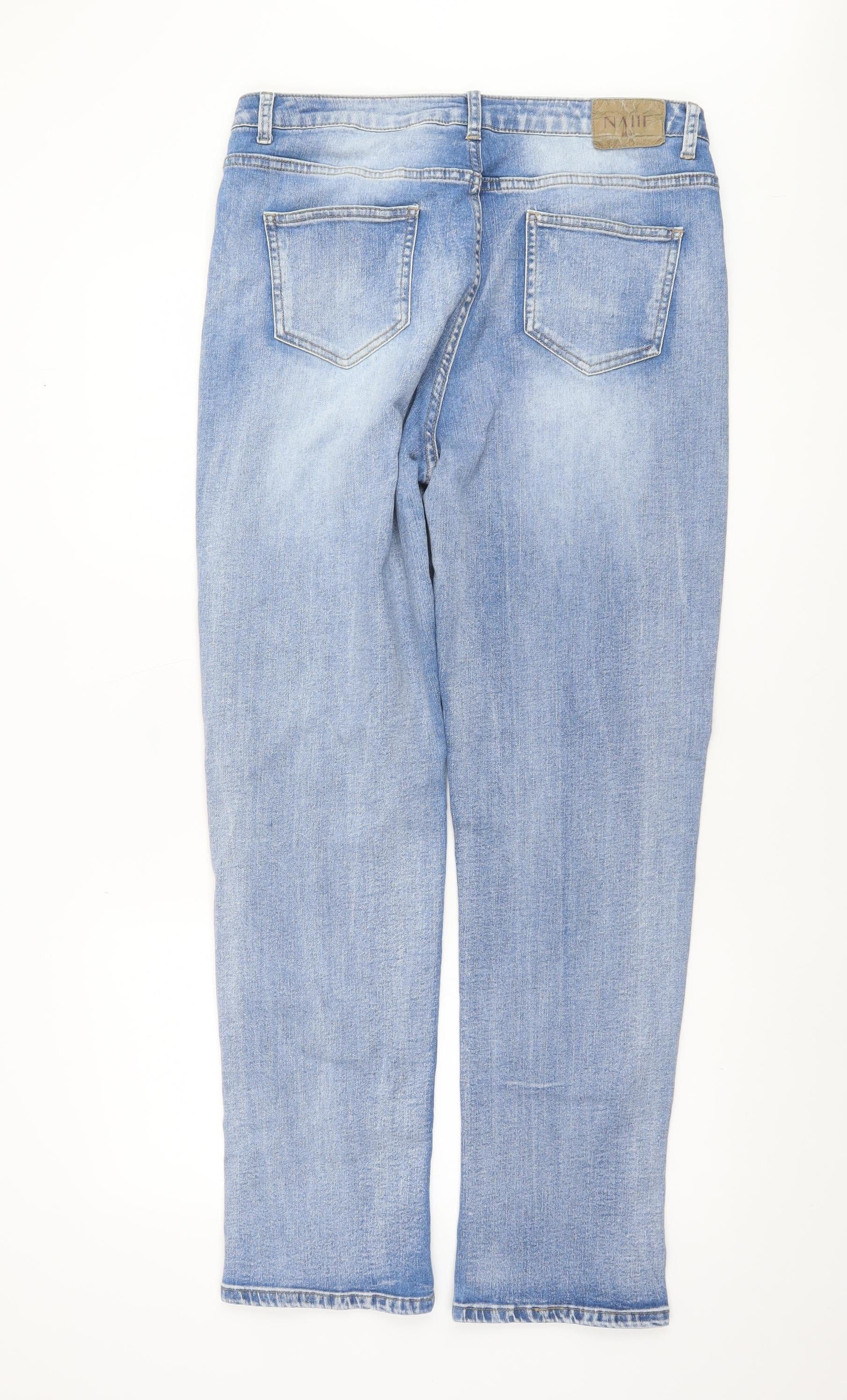 Discover effortless everyday style with these NAIIF Women’s Blue Straight Leg Stretch Denim Jeans in size XL. Crafted from a soft blend of cotton, polyester, and elastane, these jeans combine comfort and durability to create a pair that not only looks flattering but feels great to wear. The light blue wash gives them a versatile, worn-in look perfect for day-to-day outfits, whether you’re dressing up for lunch with friends or keeping it casual for errands. Designed in a classic straight leg cut, they provide a timeless silhouette that balances comfort and sophistication for modern, relaxed styling. Featuring a mid-rise waist, zip and button closure, and a traditional five-pocket design, these NAIIF jeans are both functional and easy to wear. The stretch denim fabric ensures flexibility and ease of movement, while the easy-care and machine washable material makes them ideal for busy lifestyles. Their adaptable design makes them suitable for all seasons—pair them with lightweight tops in summer or cosy knits in winter. These jeans are in excellent pre-owned condition, showing only minimal signs of gentle wear with no visible flaws or damage. They reflect NAIIF’s reputation for creating denim that blends trend-conscious design with everyday practicality. Perfect for women who appreciate comfort without compromising on refined denim style, these jeans are ready to become a wardrobe favourite. Embrace relaxed confidence and timeless appeal with these NAIIF light blue jeans—a versatile staple that complements every casual look. Grab them today and enjoy a flattering fit that transitions effortlessly from day to night.