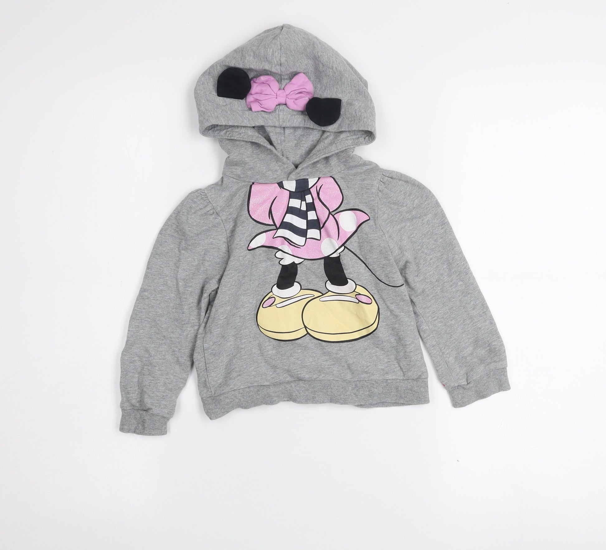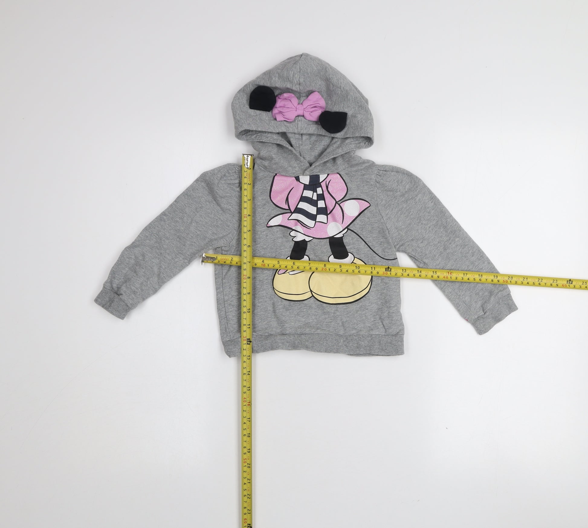 Girls Grey Minnie Mouse Pullover Hoodie 2-3 Years Hooded Sweatshirt