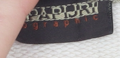 Elevate your casual wear with this Napapijri Men's Beige Pullover Sweatshirt. Crafted for comfort and style, this regular-fit pullover is made from 100% cotton, offering you softness and breathability for those cooler autumn and winter days. Its stylish beige hue complements a variety of outfits, while the iconic Napapijri logo accent and flag theme add a distinctive touch. Perfect for both casual and semi-casual outings, this sweatshirt features a long sleeve design and crew neckline, providing a classic look that never goes out of style. Whether you're heading out for a relaxed gathering or simply enjoying a day at home, its regular fit ensures premium comfort without sacrificing personal style. This sweatshirt is machine washable, making maintenance a breeze. With its graphic print feature, this piece stands out while remaining versatile enough to pair with your existing wardrobe. Don't miss out on this essential addition to your clothing collection. Crafted with high-quality jersey fabric, this pullover seamlessly blends durability with an on-trend aesthetic. Perfect for men who appreciate quality and contemporary design.