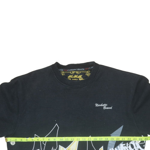 Step into standout street style with this Narkotic Brand men's sweatshirt in classic black, designed with an eye-catching graffiti graphic that reflects an unmistakable urban edge. Crafted from a soft and comfortable cotton and polyester fleece blend, it delivers both warmth and durability for reliable wear across seasons. The pullover style with a crew neckline and long sleeves makes it an easy go-to for layering during autumn, winter, or even cooler spring days. Its bold street art-inspired front and back designs showcase the brand’s Parisian flair, making it a perfect piece for those who love unique, creative fashion.Built for comfort and individuality, this sweatshirt features ribbed cuffs and hem for a snug fit that retains shape over time. Its soft fleece interior ensures warmth without the weight, ideal for everyday wear. The graphic print and embroidered logo accents add distinctive detail and an artistic twist to casual styling. Pair it effortlessly with jeans, joggers or layered beneath a bomber jacket for a contemporary casual look that moves from day to night with ease.This regular fit Narkotic Brand sweatshirt is machine washable, ensuring easy garment care and long-lasting quality. Despite being pre-owned, it remains in very good condition with only minor signs of gentle use and no visible flaws. Perfect for fans of streetwear and graphic fashion, this sweatshirt seamlessly blends comfort with creative design. Whether worn for leisure, social outings, or simply to express personal style, it commands attention and delivers genuine street culture spirit. A must-have addition to any stylish man’s wardrobe who appreciates bold yet wearable designs.