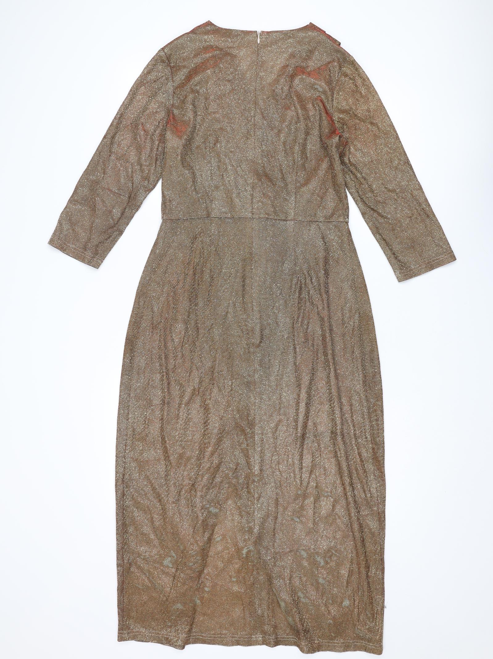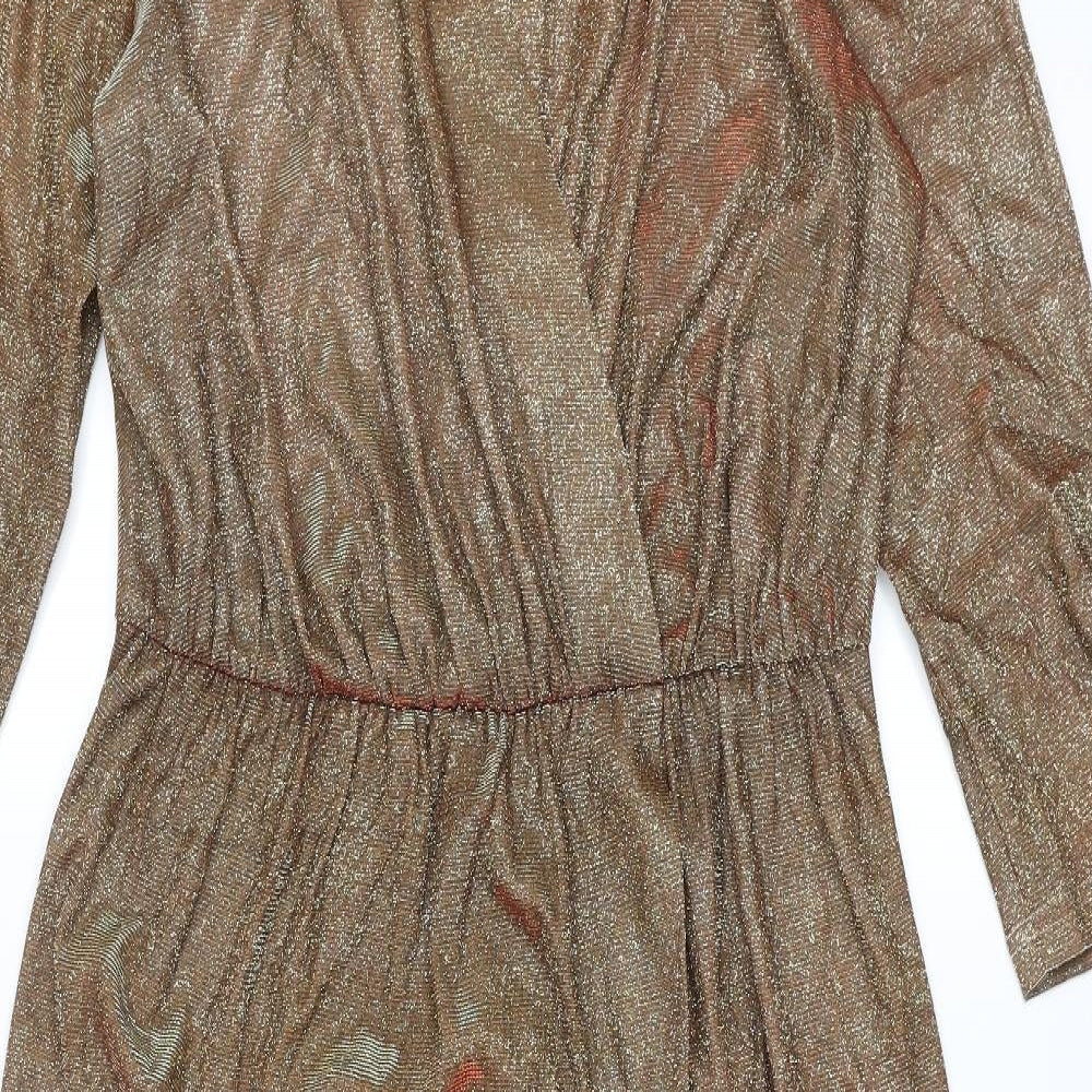 Womens Gold Polyester A-Line Size 10 V-Neck Zip