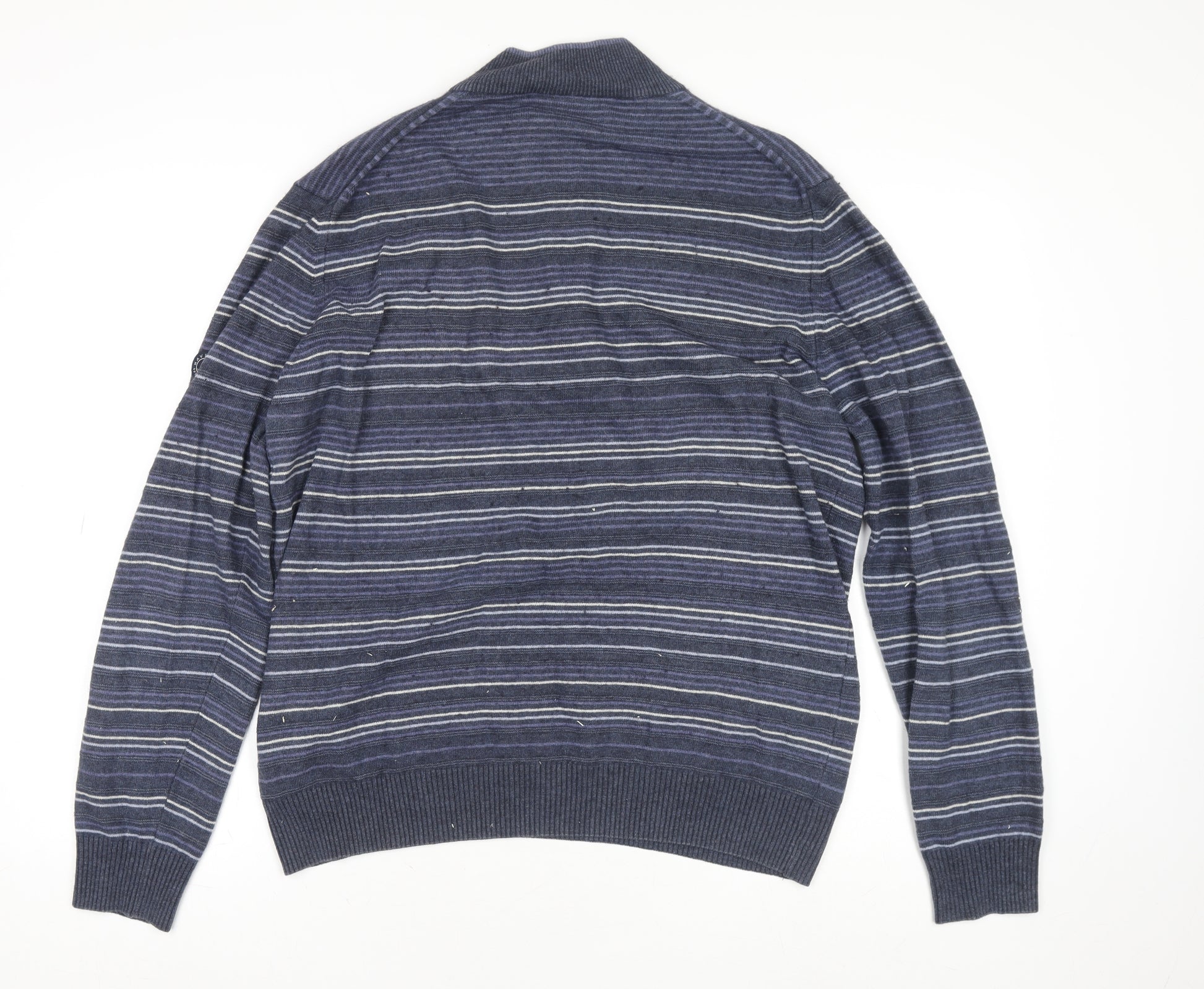 Men's Blue XL 1/2 Zip Striped Merino Wool Jumper