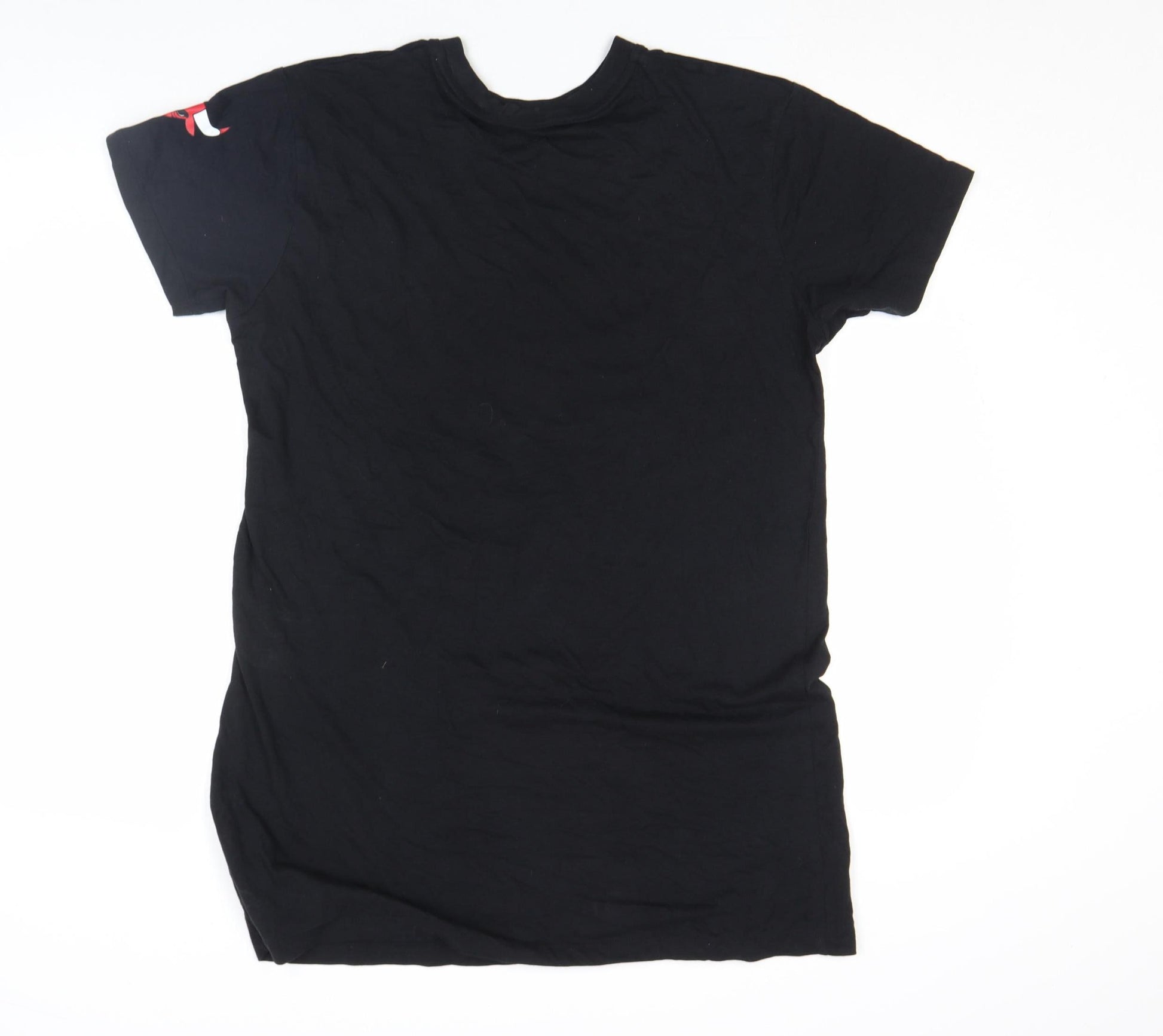 Show your love for basketball with this official NBA Chicago Bulls women’s T-shirt, designed for sporty style and everyday comfort. Crafted from 100% lightweight cotton jersey, this black short sleeve tee feels soft against the skin and offers breathable wear for any season. It features a bold red and white Chicago Bulls logo printed across the chest, a symbol of timeless team pride and classic sports fashion. The crew neck and regular fit provide easy movement and a relaxed silhouette that flatters while keeping things casual. Perfect for pairing with jeans, shorts, or joggers, this versatile top is great for match days, casual outings, or lounging in comfort. Made in Turkey, the fabric quality ensures long-lasting softness and durability wash after wash. The NBA branding adds authentic detail, making it an ideal pick for fans and those who appreciate sporty vintage-inspired streetwear. With its clean design and iconic graphic, this top fits seamlessly into a stylish yet relaxed wardrobe. A great choice for any season, it works as well at home as it does layered up for outdoor events. With no visible damage and minimal signs of wear, it remains in excellent condition, ready to add instant personality to any outfit. Celebrate your team in classic sporty comfort – an essential piece for basketball lovers and casual wearers alike, blending effortless style with everyday practicality.