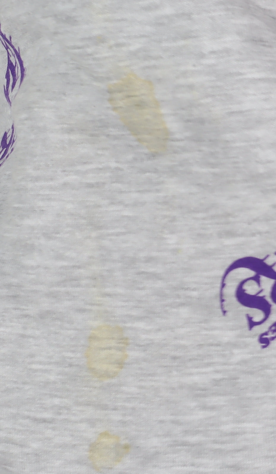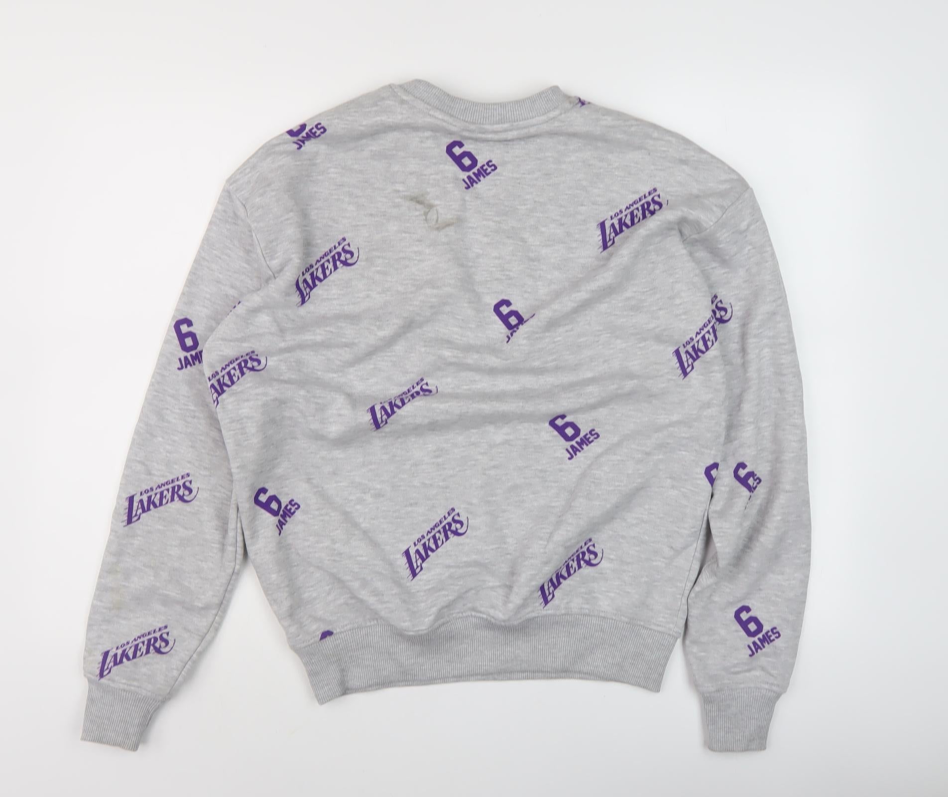 Celebrate your team pride with this NBA Men's Grey Pullover Sweatshirt. Ideal for sports fans, this sweatshirt is designed with a stylish Los Angeles Lakers graphic print that makes it a standout piece. Crafted from a soft and durable blend of cotton and polyester fleece, it promises warmth and comfort—perfect for chilly autumn and winter days. The regular fit and crew neck provide classic styling, while the long sleeves ensure full coverage, making it a versatile addition to your wardrobe. Despite being in good used condition, this piece features noticeable stains on the front and back, adding character and a vintage appeal preferred by some. It's machine washable, so maintenance is easy. Whether you're wearing it to a game or a casual day out, this Lakers sweatshirt allows you to showcase your team spirit in comfort and style.